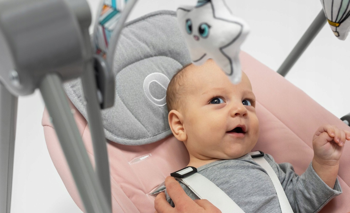 Miękka odpinana poduszka zapewnia podparcie dla główki dziecka.