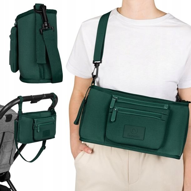 Dzięki niemu wszystkie niezbędne przedmioty masz tuż pod ręką, nawet jeśli nie stoisz w pobliżu wózka. Wygodnie przewieszony przez ramię organizer sprawdza się doskonale na spacerach.