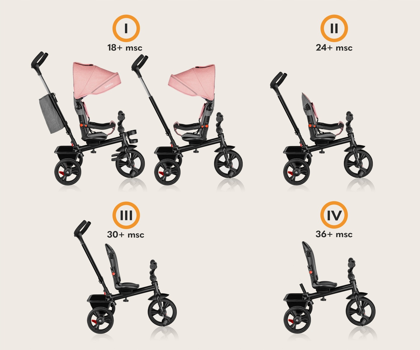Pchacz – dla najmłodszych dzieci. Wolne koło umożliwia kontrolowanie trasy przez rodziców za pomocą regulowanej rączki. Obrotowe siedzisko pozwala na to, by dziecko zwrócone było również przodem do rodzica, mogąc mieć z nim ciągły kontakt.
