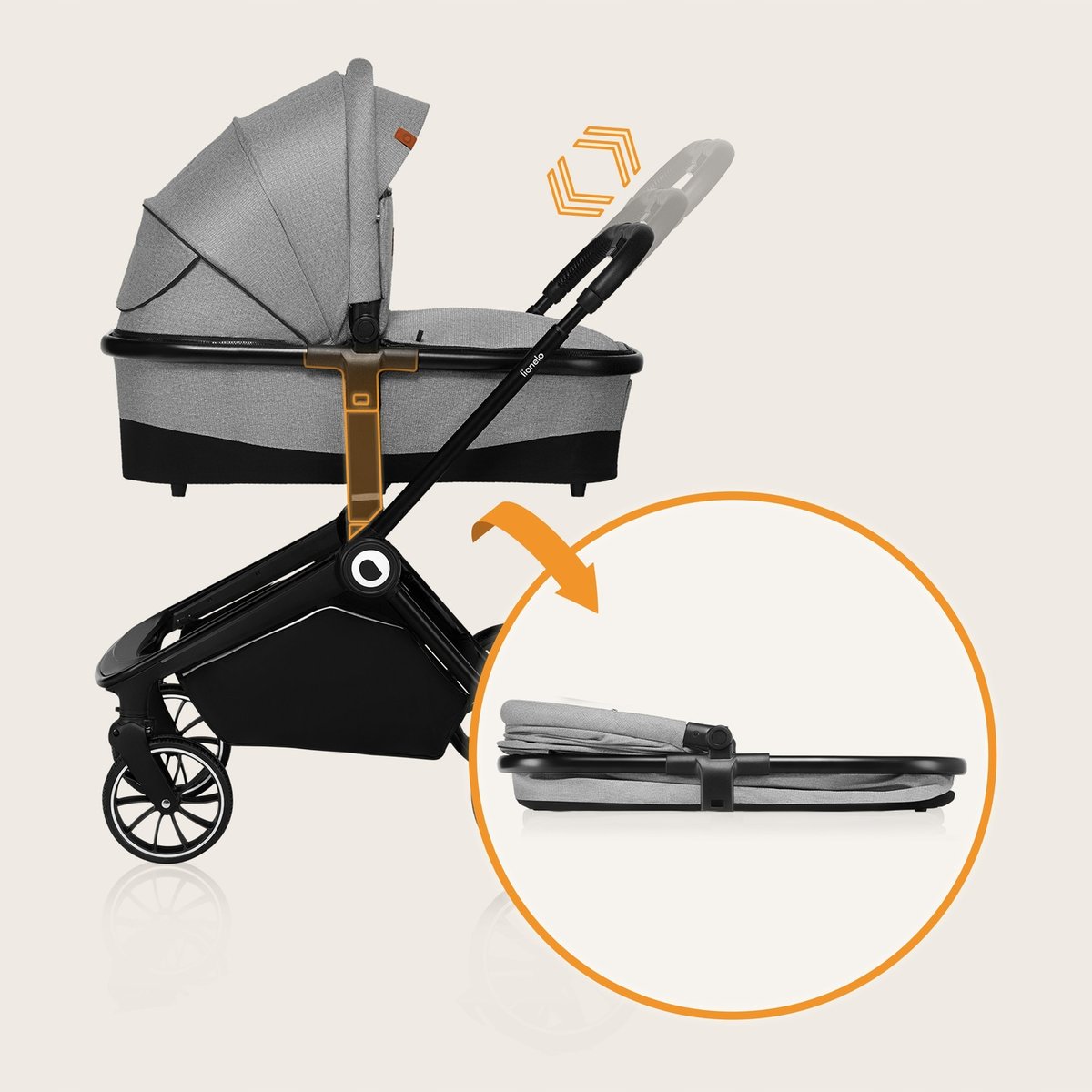 ✔️ Funkcja nosidełka – ergonomiczna rączka pozwala na swobodne przenoszenie dziecka w gondoli.