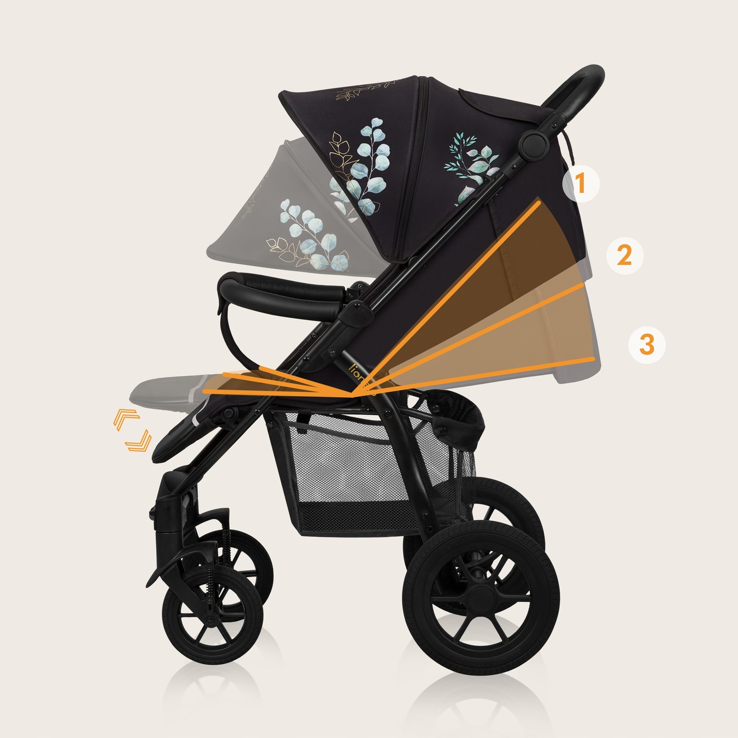 ✔️ 3-stopniowa regulacja oparcia pozwala na zmianę pozycji od siedzącej do leżącej.