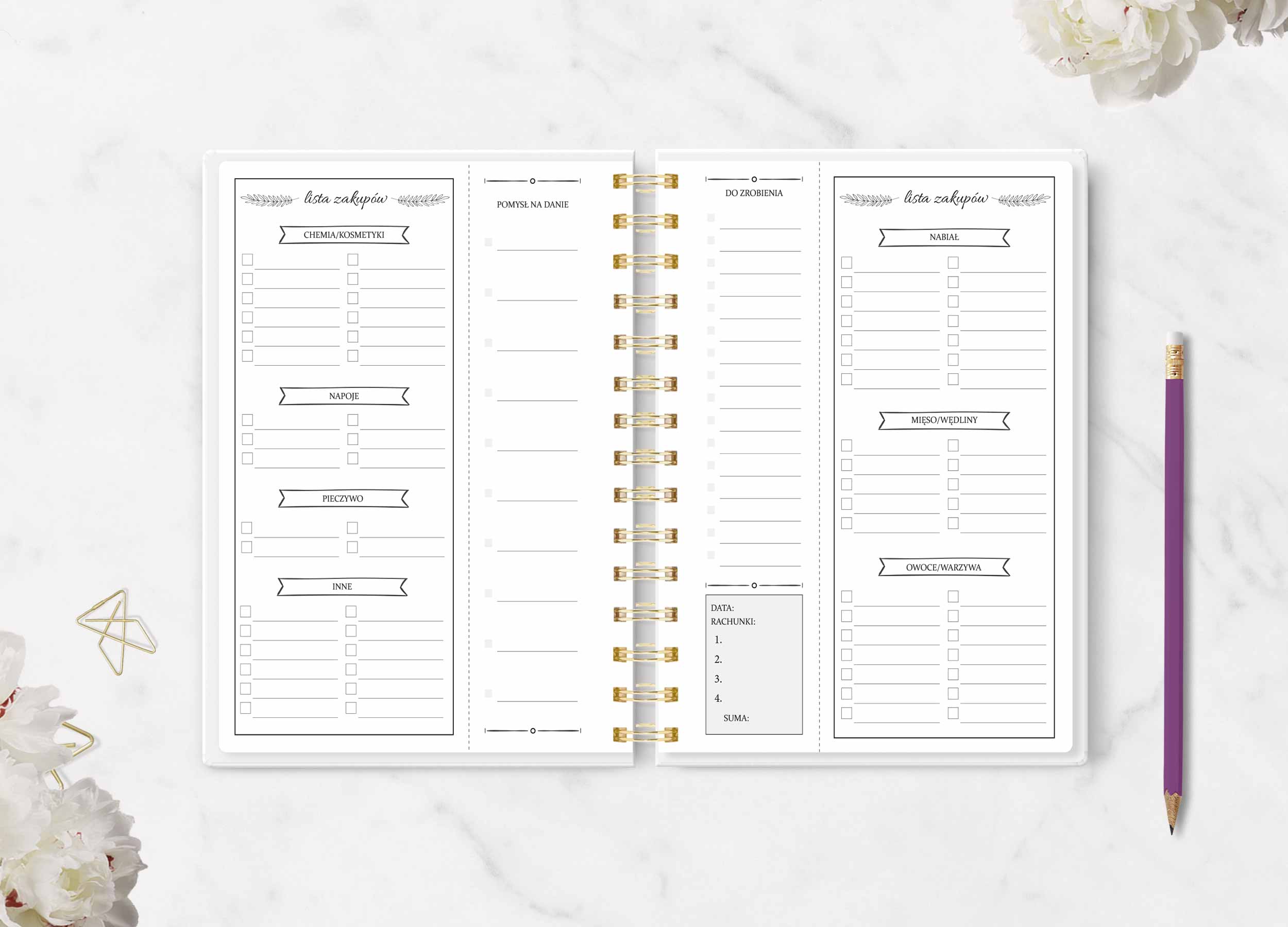 Lista Zakupów stworzona jest również dla osób lubiących kontrolować własne rachunki – 10 kart w notesie przeznaczonych jest na wpisanie kosztów związanych z zakupami.