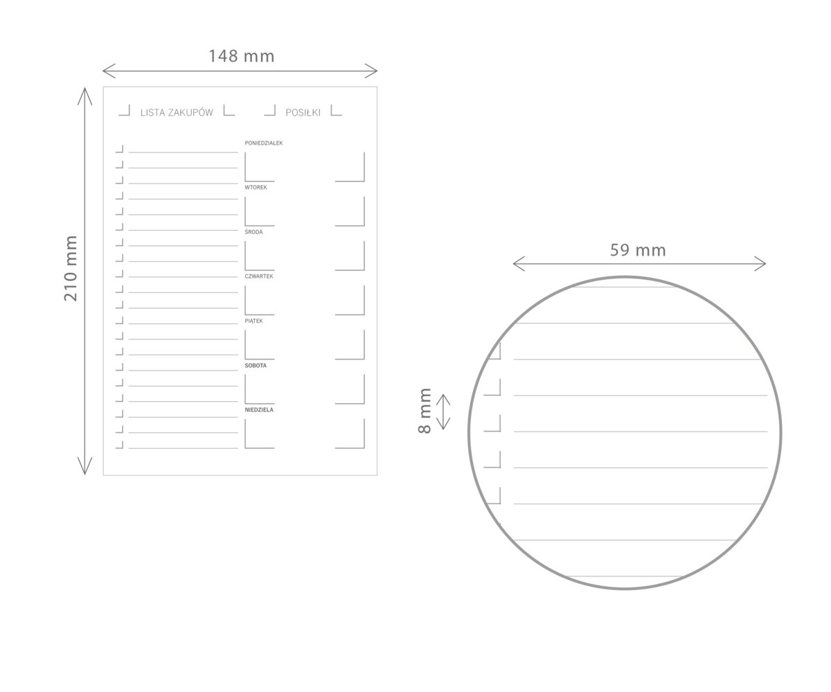Notes posiada odrywane kartki w formacie A5, jest to optymalny format, dzięki któremu można zmieścić więcej informacji. Przed zakupami odrywamy kartkę, wrzucamy do torebki i dzięki liście o niczym nie zapomnimy.