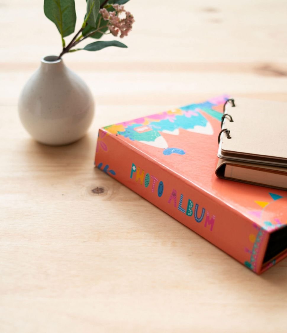 Album na zdjęcia w twardej oprawie zabezpieczony foliową obwolutą. Jego strony posiadają koszulke z folii, która ułatwia umieszczanie fotografii.
