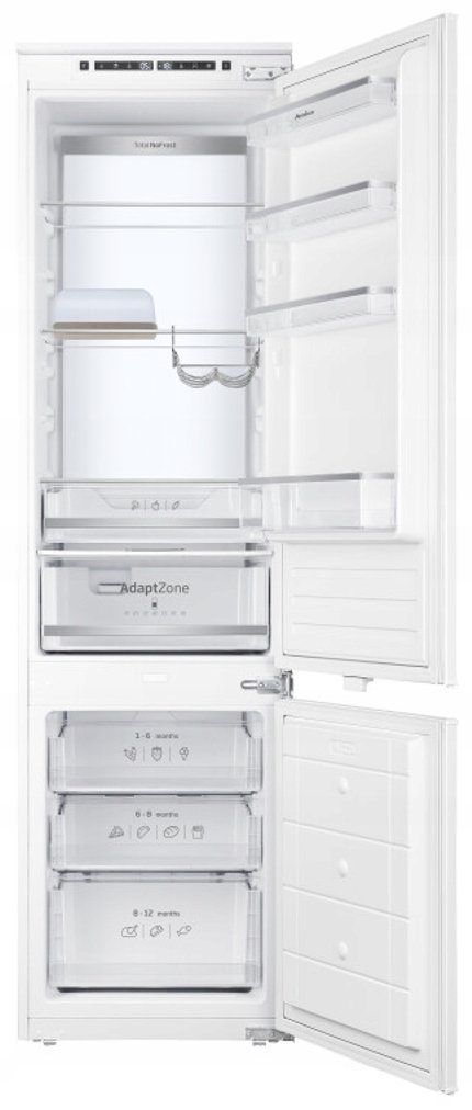 Chłodziarko - zamrażarka do zabudowy o pojemności całkowitej 267l. Total NoFrost, szuflada kontroli wilgotności VitControl, alarm podwyższonej temperatury i niedomkniętych drzwi.