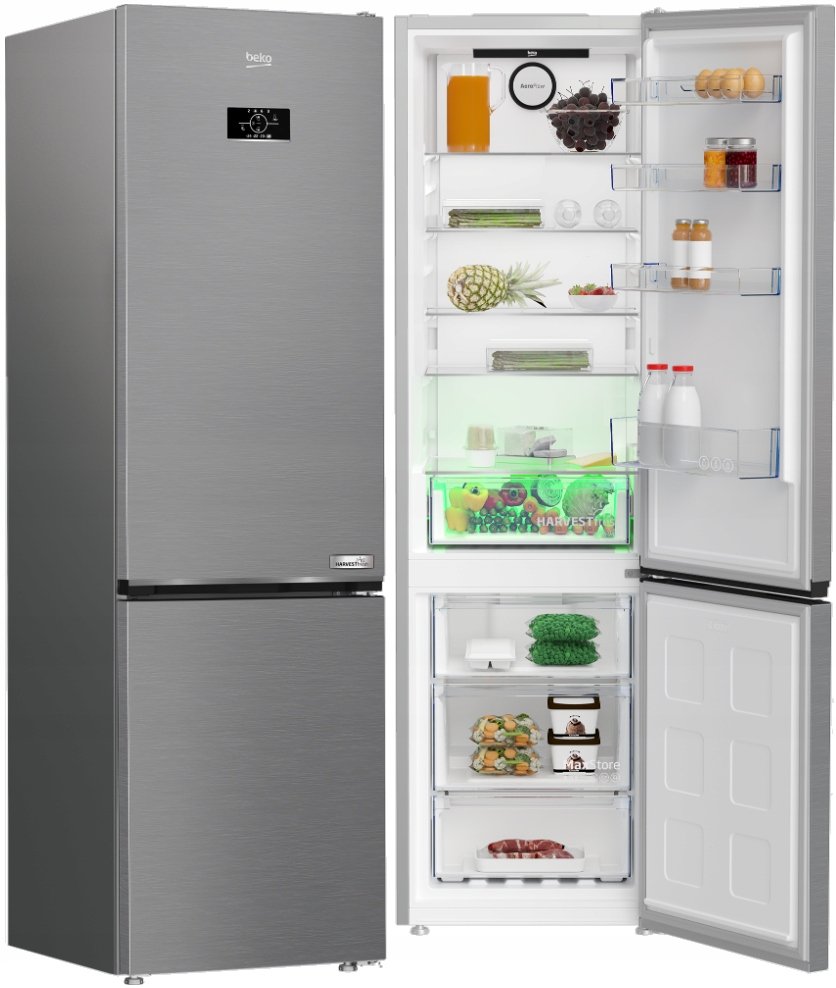 Lodówka Beko B3RCNA404HXB NoFrost 355l 60cm LEDChłodziarko-zamrażarka o szerokości 59.5 cm. Pojemność użytkowa chłodziarki (l): 249. Pojemność użytkowa zamrażarki (l): 106. System chłodzenia ...
