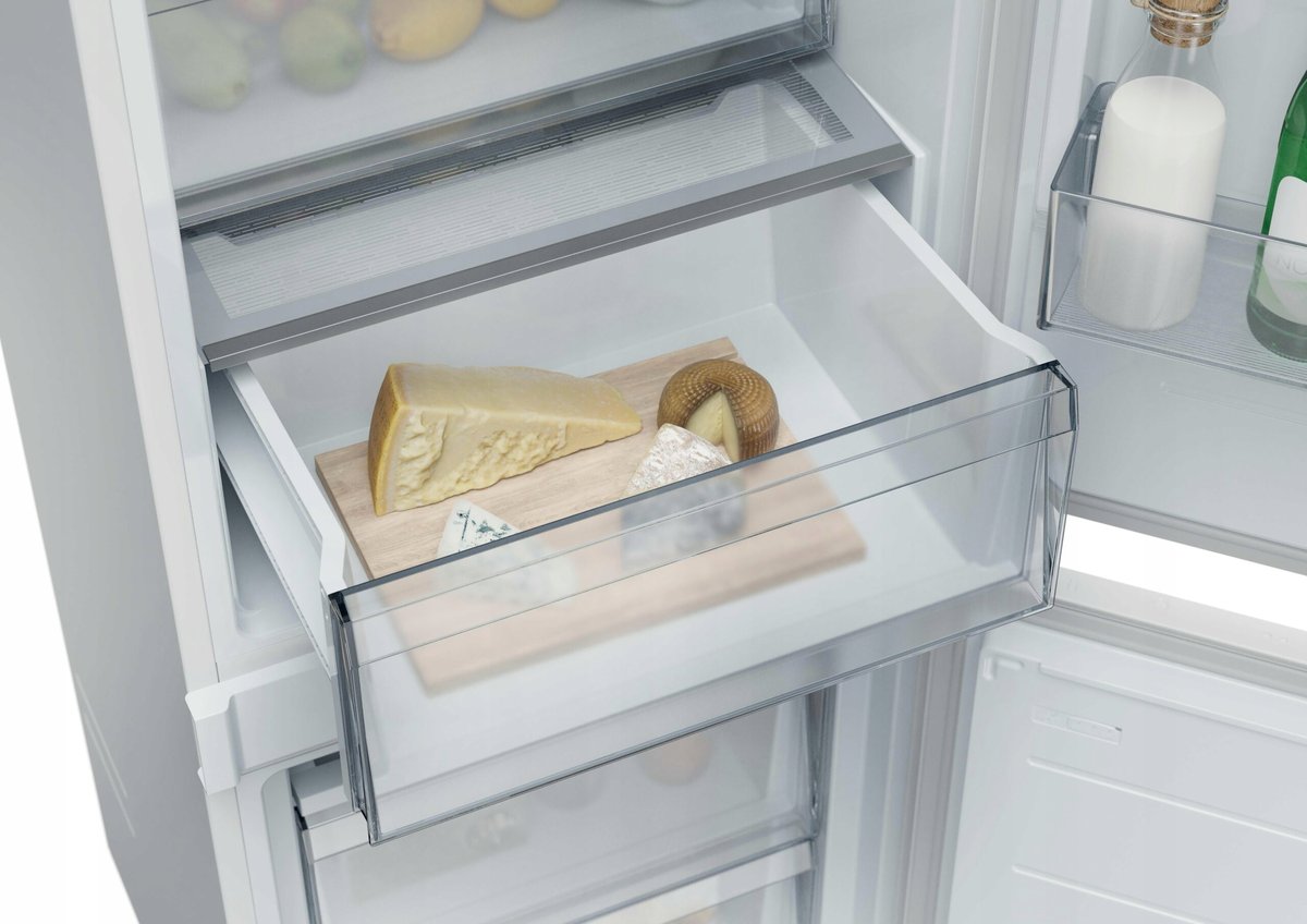 Dodatkowa szuflada w chłodziarko-zamrażarce pomoże Ci lepiej zorganizować przestrzeń i zachować świeżość ulubionych produktów. Odpowiednia do przechowywania serów i innych delikatnych artykułów, które wymagają oddzielenia – wszystko na swoim miejscu, zawsze pod ręką!