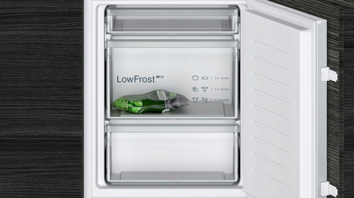 Gdy w środku lodówki wytworzy się lód i szron, zużywa ona więcej energii: dzięki innowacyjnej technologii lowFrost ze specjalnym parownikiem nie tylko powstaje mniej lodu, który jest bardziej jednorodny, ale samo rozmrażanie jest znacznie szybsze niż w konwencjonalnych systemach.
