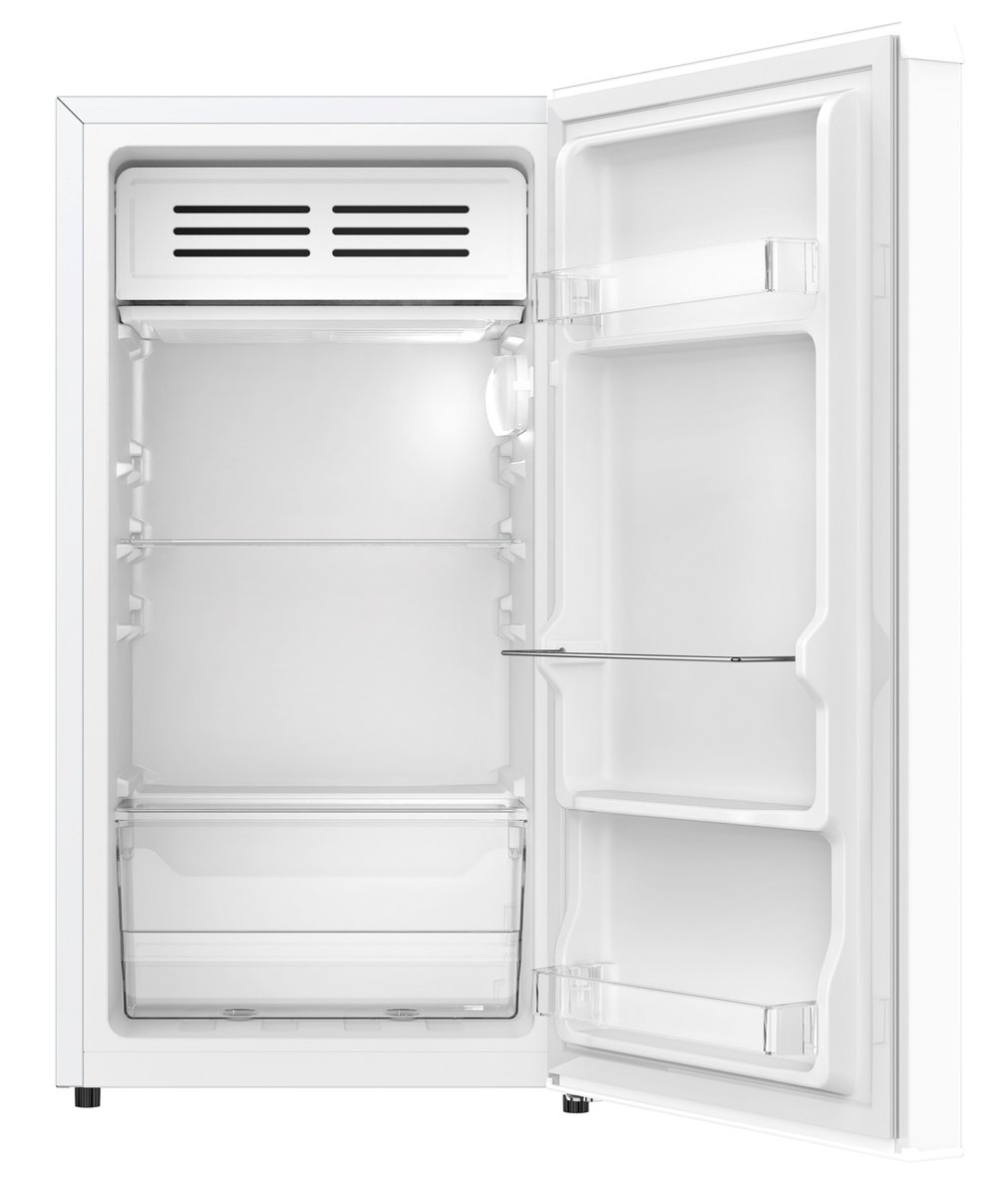 Całkowita pojemność lodówki wynosi 83 litry, a dzięki rocznemu zużyciu energii na poziomie 84 kWh zalicza się do klasy energetycznej E. Wnętrze jest praktycznie podzielone na dwie szklane półki oraz przezroczystą szufladę. W drzwiach znajdują się przegródki na napoje, sosy lub przetwory.