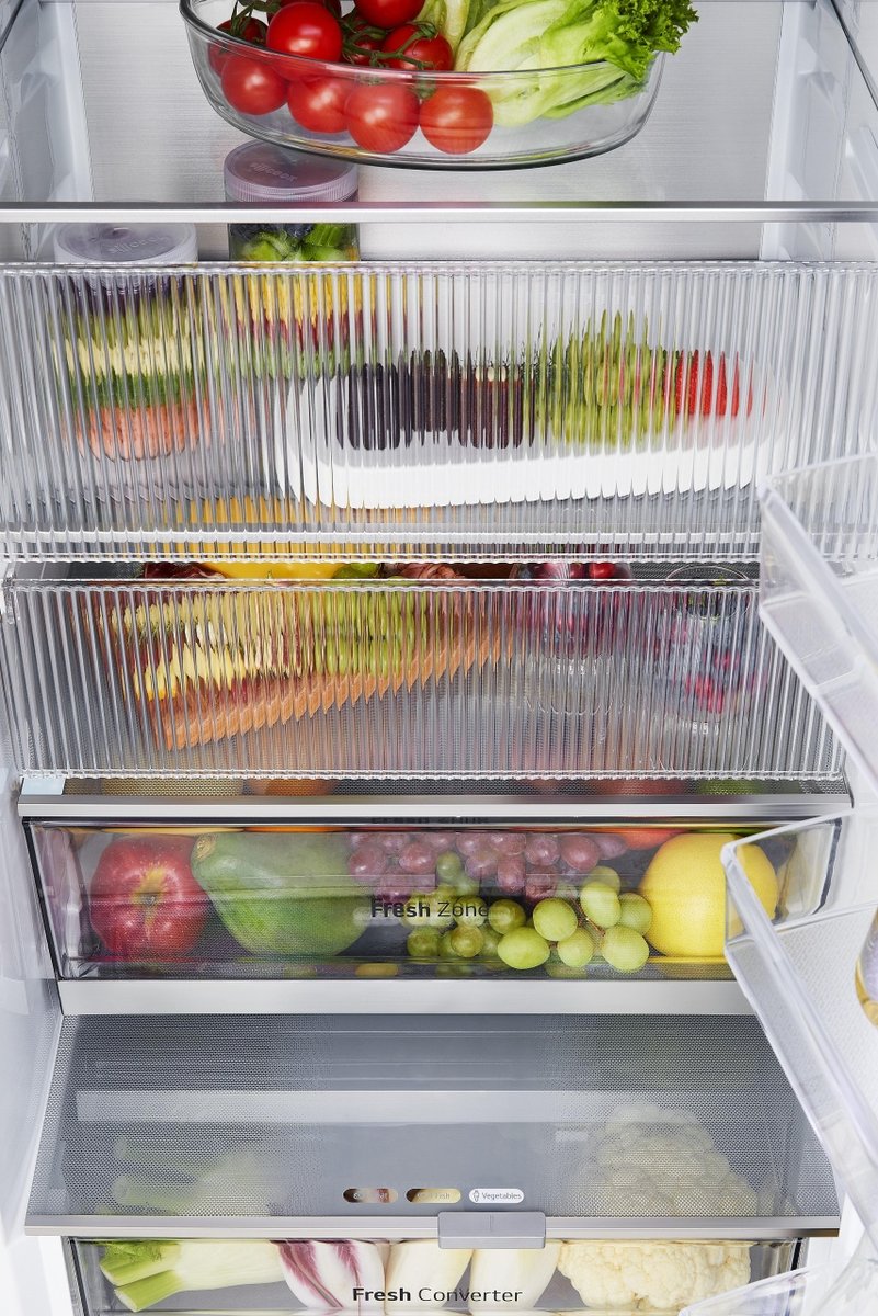 Pozwala zobaczyć wnętrze lodówki bez otwierania drzwi, co pomaga utrzymać wewnętrzne temperatury i zmniejsza zużycie energii.