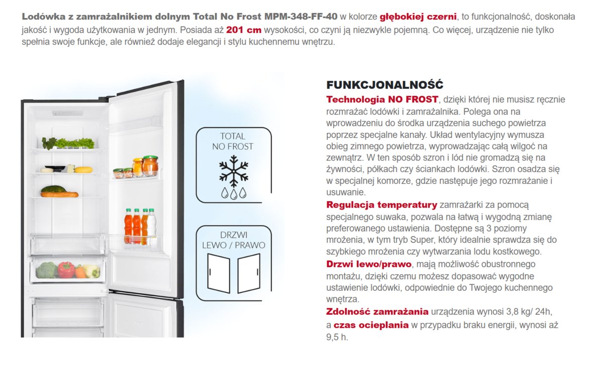 | Nazwa: | Lodówka MPM-348-FF-40 |