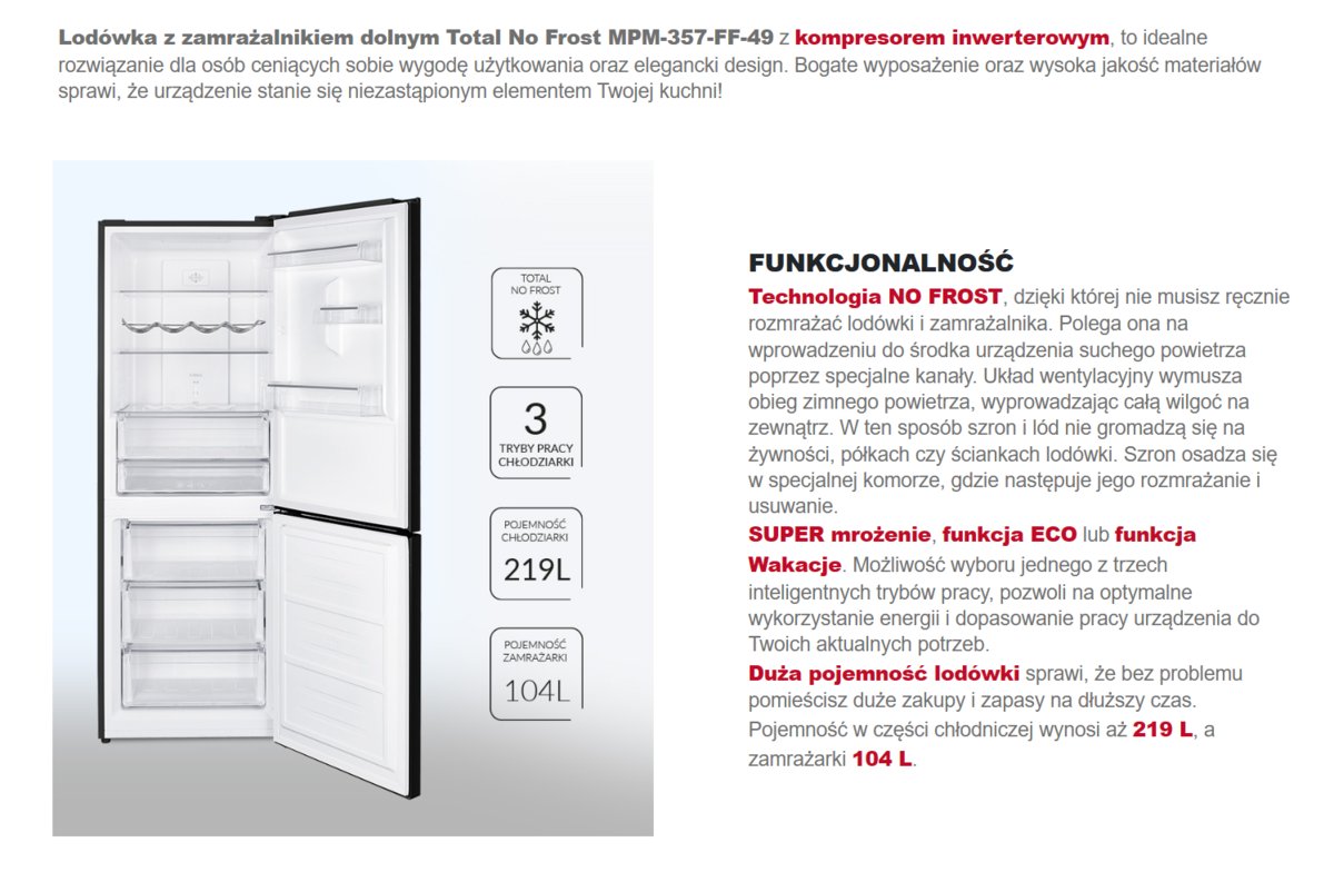 | Nazwa: | Lodówka MPM-357-FF-49 |
