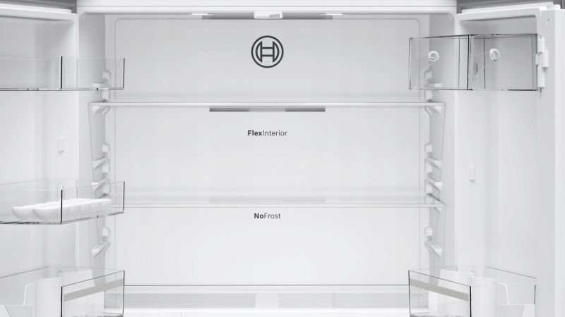 Ręczne rozmrażanie chłodziarki może być bardzo uciążliwe i czasochłonne. Dzięki naszym chłodziarko- zamrażarkom z funkcją NoFrost, można na dobre skreślić tę czynność ze swojej listy zadań. Równomierny obieg suchego zimnego powietrza zapobiega tworzeniu się lodu w całym wnętrzu chłodziarko-zamrażarki. W rezultacie na tylnej ściance lodówki nie gromadzi się lód, a szuflady zamrażarki można zawsze łatwo otwierać i zamykać bez warstwy lodu. Funkcja NoFrost nie tylko zapobiega powstawaniu lodu, ale również eliminuje potrzebę ręcznego rozmrażania.
