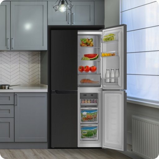 Czarna chłodziarko-zamrażarka Kernau KFRM 1881 BS, wykonana ze stali nierdzewnej, jest wyposażona w system No Frost, który zapobiega gromadzeniu się szronu i lodu dzięki cyrkulacji suchego, chłodnego powietrza wewnątrz komór. Funkcja automatycznego rozmrażania eliminuje konieczność ręcznego usuwania lodu. Urządzenie posiada także funkcje Super Freezing i Super Cooling, które umożliwiają szybkie schładzanie i zamrażanie produktów, zapewniając ich dłuższą świeżość i zachowanie wartości odżywczych. Funkcje Eco i Holiday umożliwiają optymalne dostosowanie temperatury podczas dłuższego nieużywania lodówki, co pozwala zredukować zbędne zużycie energii.