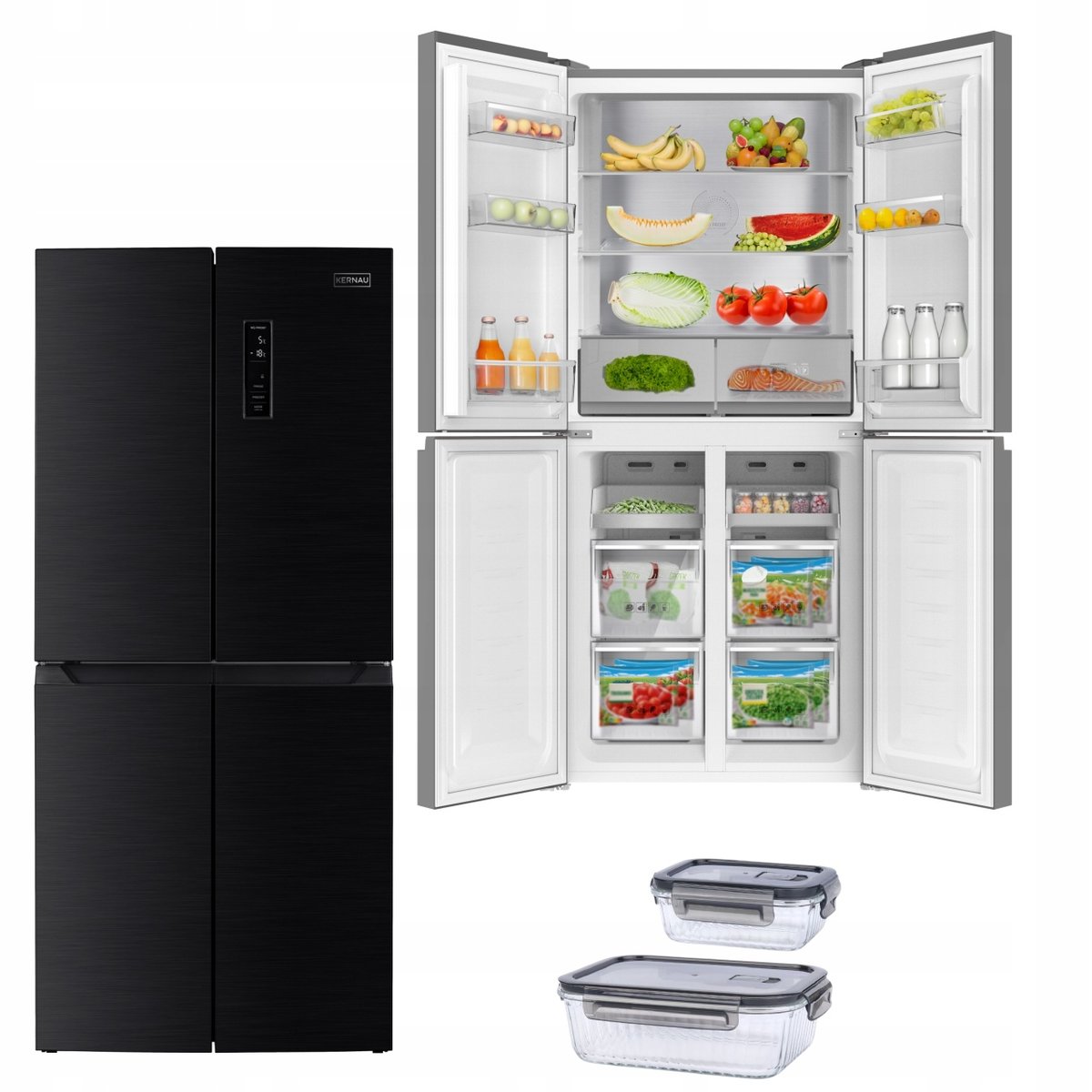 Lodówka SIDE BY SIDE Kernau KFRM 1881 BS 466L 80 cm NoFrost LED Czarna