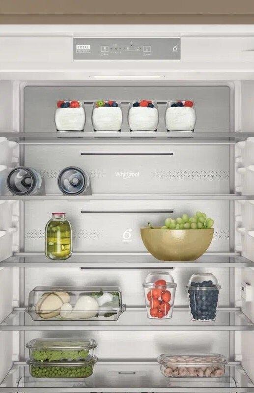 Nowa chłodziarko-zamrażarka do zabudowy Total No Frost o największej pojemności* w swojej kategorii, osiągająca pojemność netto 394 l dzięki dodatkowej szerokości 15 cm, zapewniającej o 50%** więcej miejsca do przechowywania.*Na podstawie łącznej pojemności netto deklarowanej przez konkurencyjnych producentów, biorąc pod uwagę segment chłodziarko-zamrażarki z wbudowanym dolnym mocowaniem i w odniesieniu do wszystkich modeli o łącznej pojemności netto 394 l sprzedawanych pod markami Whirlpool Corporation: Whirlpool, Hotpoint/Ariston, Bauknecht, KitchenAid.**w porównaniu ze standardową lodówko-zamrażarką Whirlpool BI 55 cm No Frost