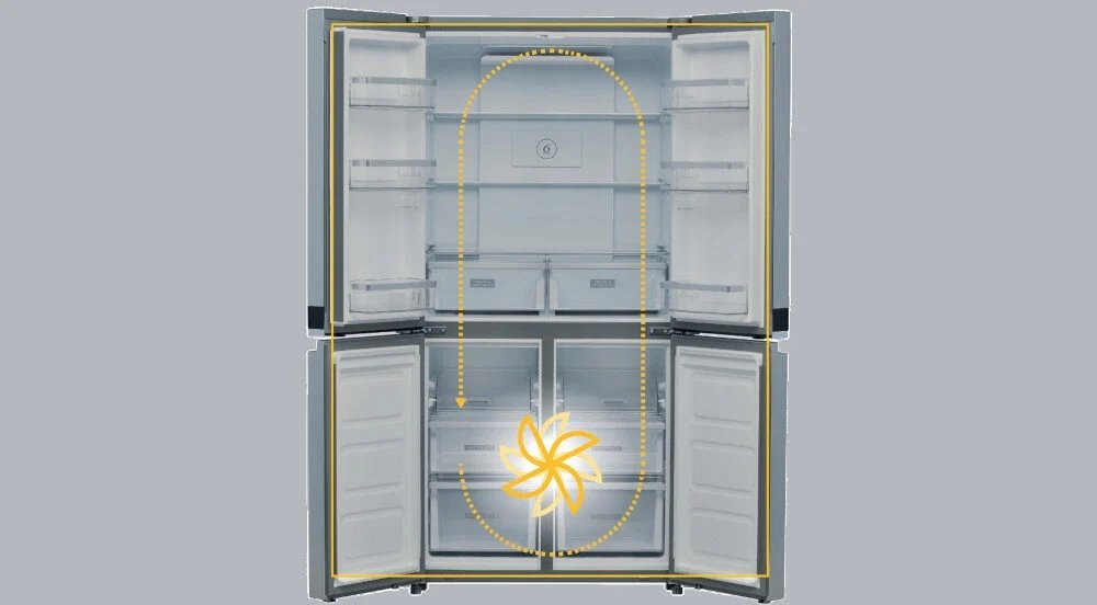 Urządzenie zapobiega gromadzeniu lodu w zamrażarce i kropel wody w lodówce, dzięki technologii No Frost, która eliminuje potrzebę ręcznego rozmrażania. Ta zaawansowana technologia zapewnia równomierne rozprowadzanie zimnego powietrza w całym wnętrzu lodówki i zamrażarki WHIRLPOOL WQ9 E2L EF. Dzięki temu temperatura jest stabilna, a wilgoć jest skutecznie usuwana.