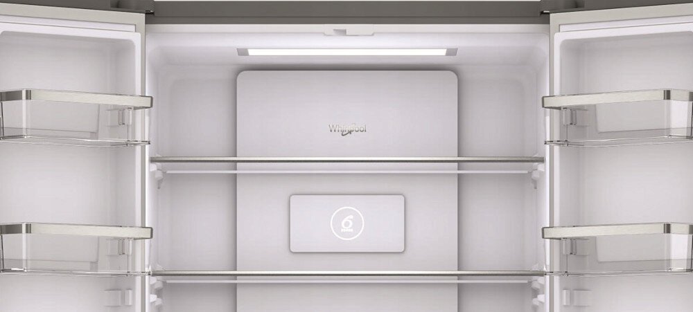 Innowacyjna technologia 6. Zmysł w lodówce WHIRLPOOL WQ9 E2L EF to zaawansowany system, który automatycznie dostosowuje ustawienia chłodzenia, aby zapewnić optymalne warunki przechowywania żywności. Stałe monitorowanie i regulacja temperatury zapewniają, że produkty są przechowywane w idealnych warunkach. Technologia 6. Zmysł działa automatycznie, co przekłada się na wygodę użytkownika i lepsze zarządzanie zapasami żywności.
