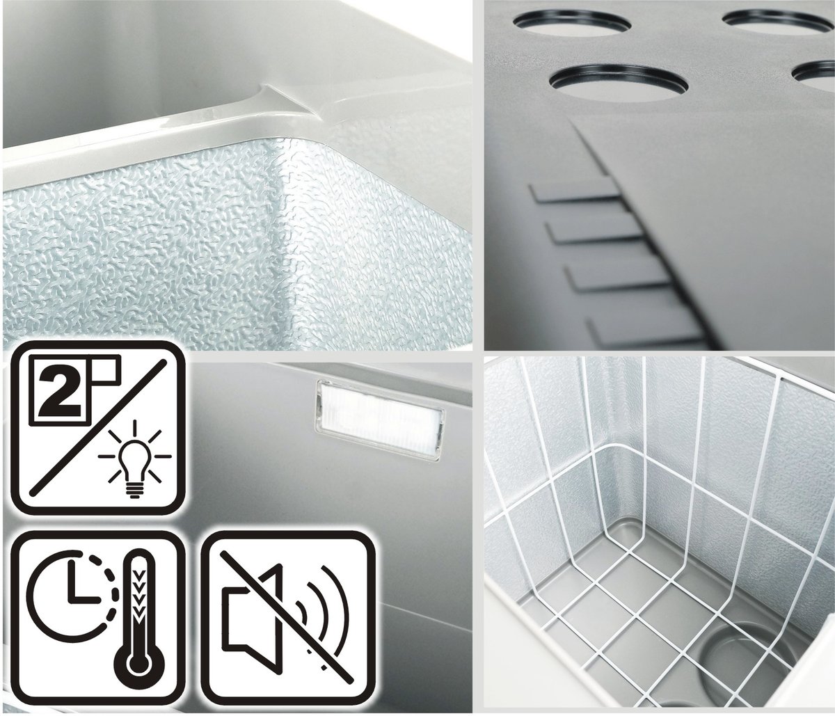 - szybkie i skuteczne przechowywanie | mrożenie wszelkich wrażliwych na ciepło artykułów spożywczych; owoców świeżych i mrożonych, leków, lodów i napojów w optymalnych warunkach chłodniczych z zakresu od -20°C do +20°C - niezależnie od temperatury zewnętrznej