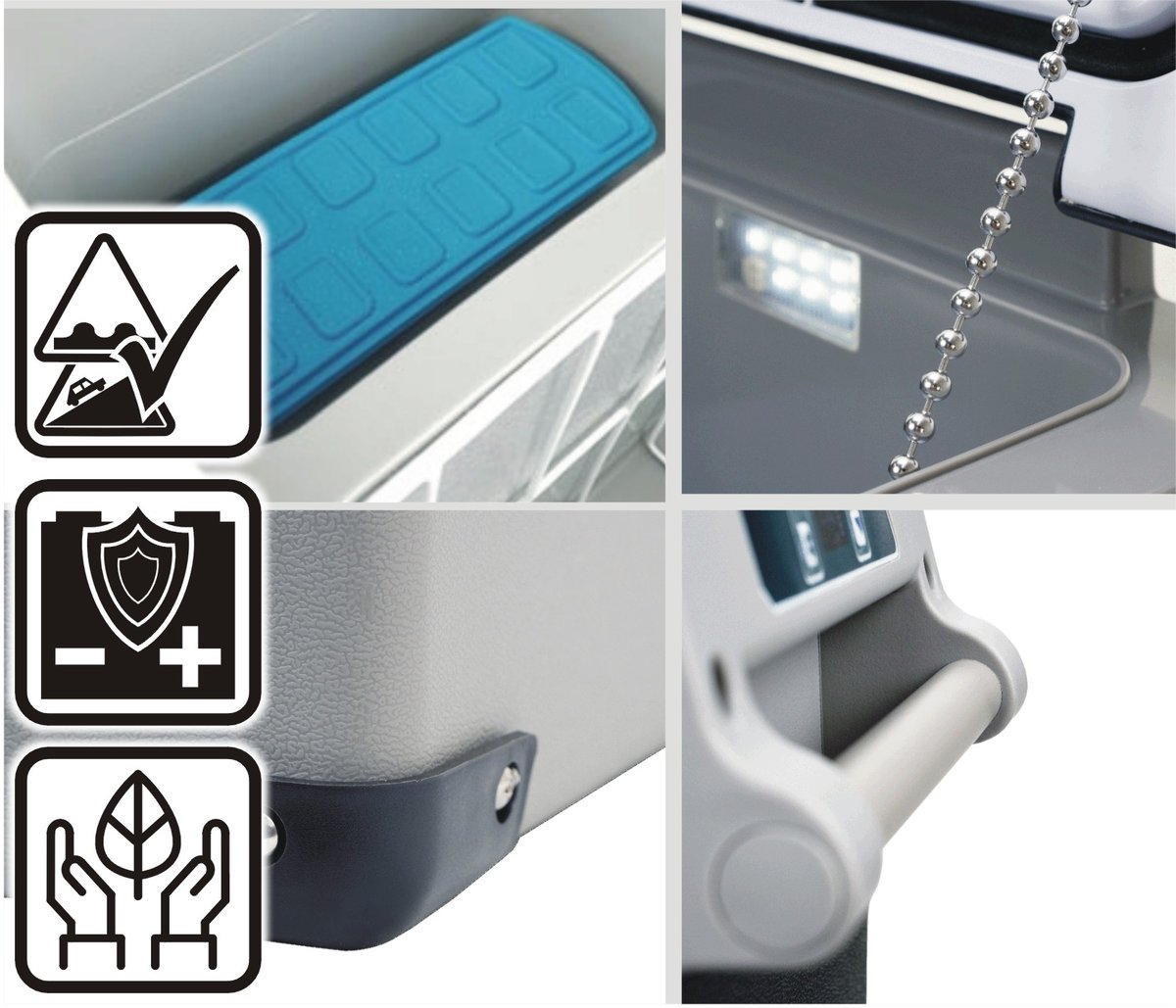 Turystyczna lodówka Wertberg to gwarancja optymalnych warunków przechowywania żywności, medykamentów, napojów czy lodów podczas podróży i wypoczynku. W odróżnieniu do chłodziarek termosowych, których efektywność uzależniona jest od temperatury otoczenia i zgromadzonych produktów, Wertberg LT to 100% lodówka - zamrażarka, o pełnej funkcjonalności i analogicznej zasadzie działania jak urządzenia stacjonarne. Technologia kompresorowa, skuteczna izolacja, solidna obudowa i intuicyjne sterowanie za pomocą panelu dotykowego i smartfona sprawiają, że użytkowanie jest wydajne, ciche i bezproblemowe bez względu na okoliczności przyrody.