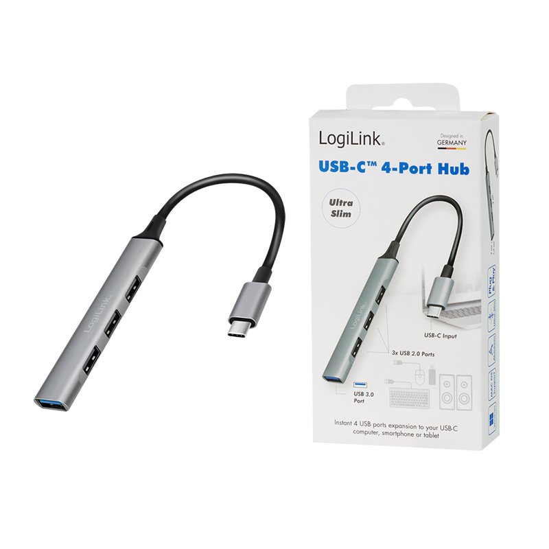 | Nazwa: | Logilink UA0392 - USB 3.2 Gen1 (typ C), USB Slim Hub 4-portowy, szary |