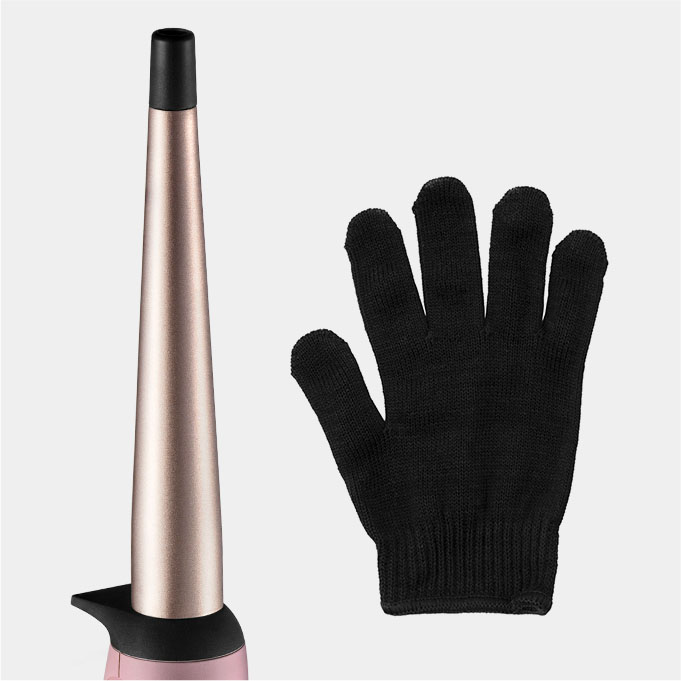 Rękawica dołączona do zestawu wykonana jest ze specjalnego, żaroodpornego materiału. Dzięki temu możesz chwytać rozgrzane pasma w dłonie, by prowadzić je tak, jak należy podczas kręcenia. Chłodna końcówka to dodatkowe wsparcie dla komfortu stylizacji!