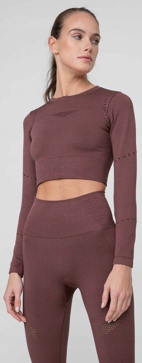 Damska koszulka, longsleeve crop top treningowy firmy 4Fmodel: H4Z22 TSDLF010kolor: burgund 60SDamski longsleeve crop top, treningowy szybkoschnący; uszyty z elastycznej bezszwowej dzianiny.Posiada ...