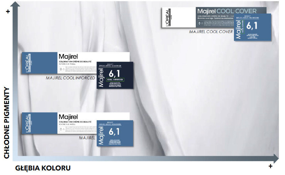 Loreal Majirel Cool Inforced to połączenie popielatych i beżowych odcieni w ultrachłodnej tonacji. Zastanawiasz się, jak sklasyfikować farbę Cool Inforced w odniesieniu do innych farb Majirel?