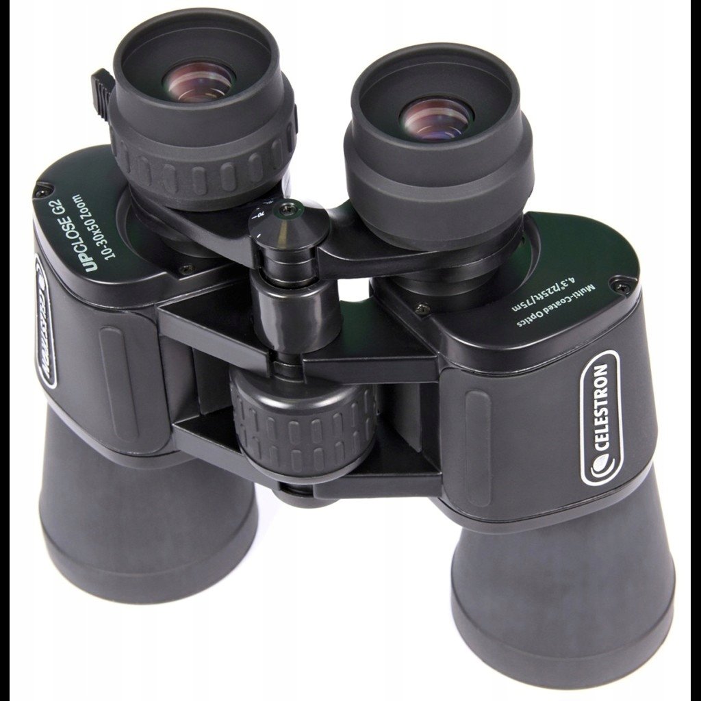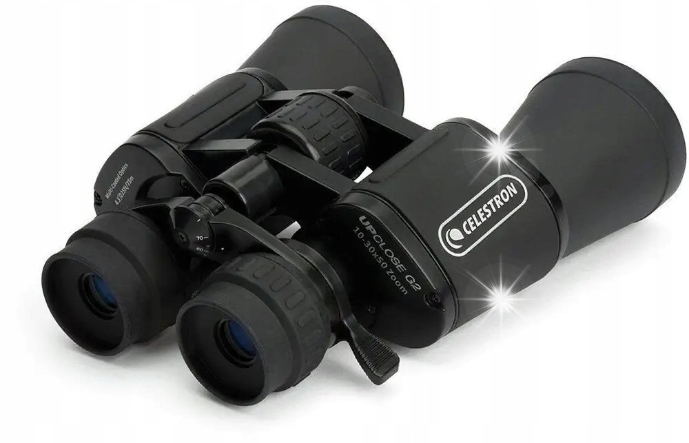 Lornetka UpClose G2 10-30x50 (zoom) firmy Celestron jest modelem przeznaczonym w głównej mierze do obserwacji imprez masowych i teatralnych, koncertów a także wydarzeń sportowych. Konstrukcja optyczna lornetki obejmuje pryzmaty typu Porro wykonane ze szkła BK7 oraz soczewki powlekane wielowarstwowymi powłokami przeciwodbiciowymi typu MC, które zwiększają transmisję światła przechodzącego przez lornetkę, gwarantując jasny i ostry obraz o wysokim poziomie kontrastu. Jest to tzw. zoom, czyli lornetka o zmiennej wartości powiększenia 10-30x, która nadaje się zarówno do obserwacji dziennych o dużym, 30x powiększeniu, jak również obserwacji zmierzchowych przy mniejszej wartości tego parametru.