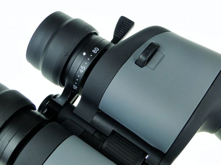 Wyposażona jest w pokrętło regulacji ostrości umieszczone na solidnym, zawiasie mocującym oba tubusy ze sobą, oraz korekcje wady wzroku umieszczoną na prawym okularze.