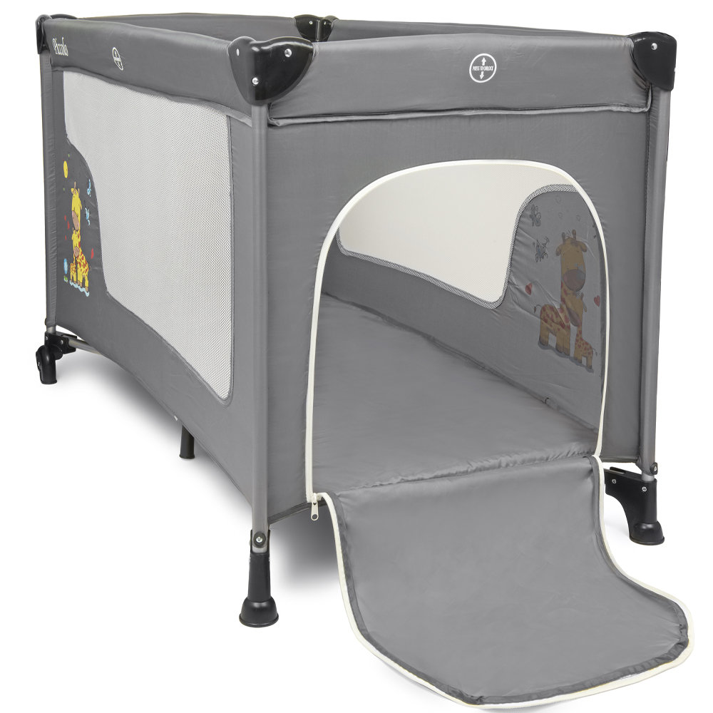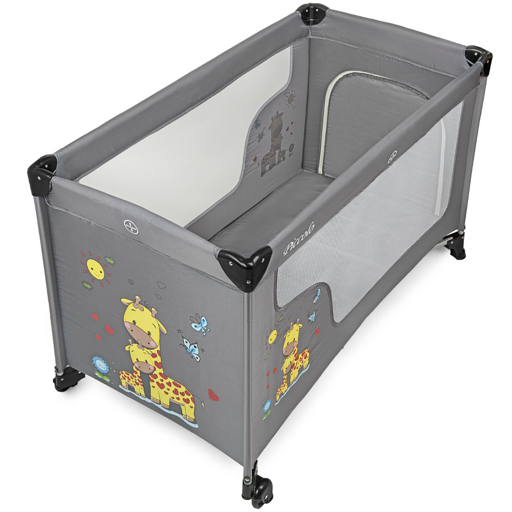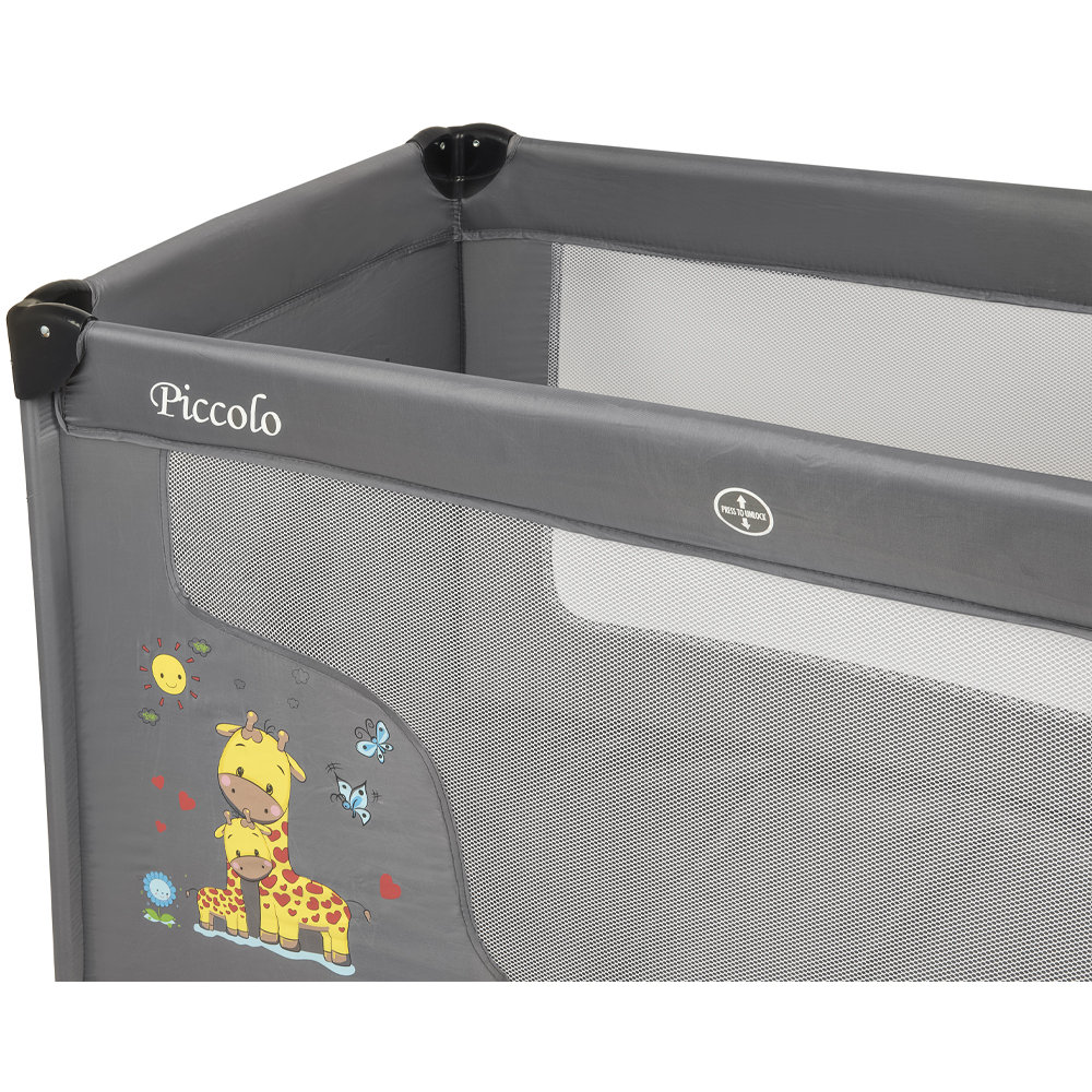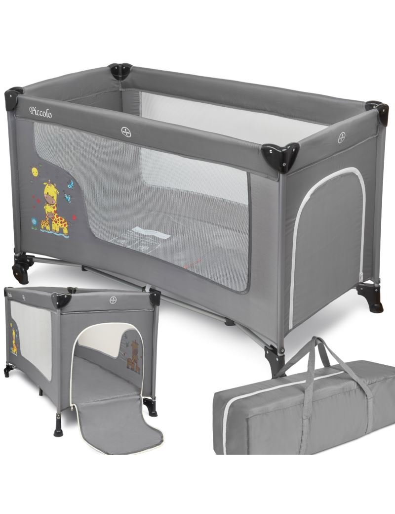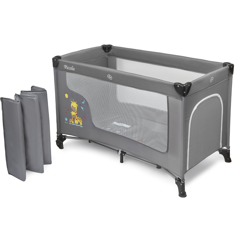 Łóżeczko turystyczne składane Piccolo z kołami i składanym materacemProdukt spełnia europejskie normy EN-71, EN-716Cechy łóżeczka:Bez twardych i ostrych krawędziKoła z blokadąBoczne wejścieMożliwość ...