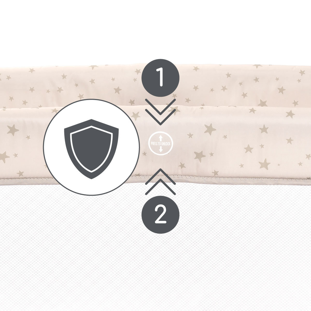 ✔️Łóżeczko zabezpieczone jest podwójnym systemem blokowania, co wyklucza przypadkowe złożenie podczas użytkowania – stabilna, bezpieczna konstrukcjaBezpieczeństwo użytkowania