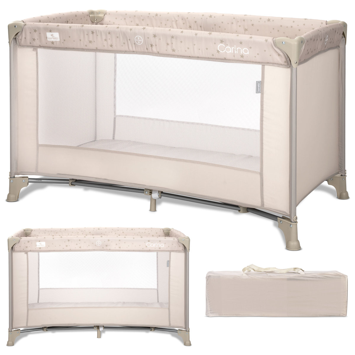 Lorelli Carina 1 to praktyczne łóżeczko turystyczne, które dzięki kompaktowemu składaniu, wyposażeniu ( materac i torba transportowa ) staje się niezastąpione w podróży, u dziadków, na działce czy w domu.Przenośne łóżeczko turystyczne gotowe na każdy wyjazd