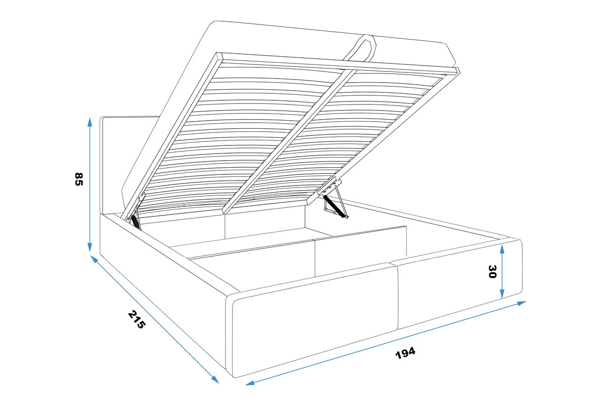 5. Po podniesieniu stelaża przestrzeń podzielona przegrodą. W tylnej części brak spodu dna. W przedniej pojemnik na pościel.