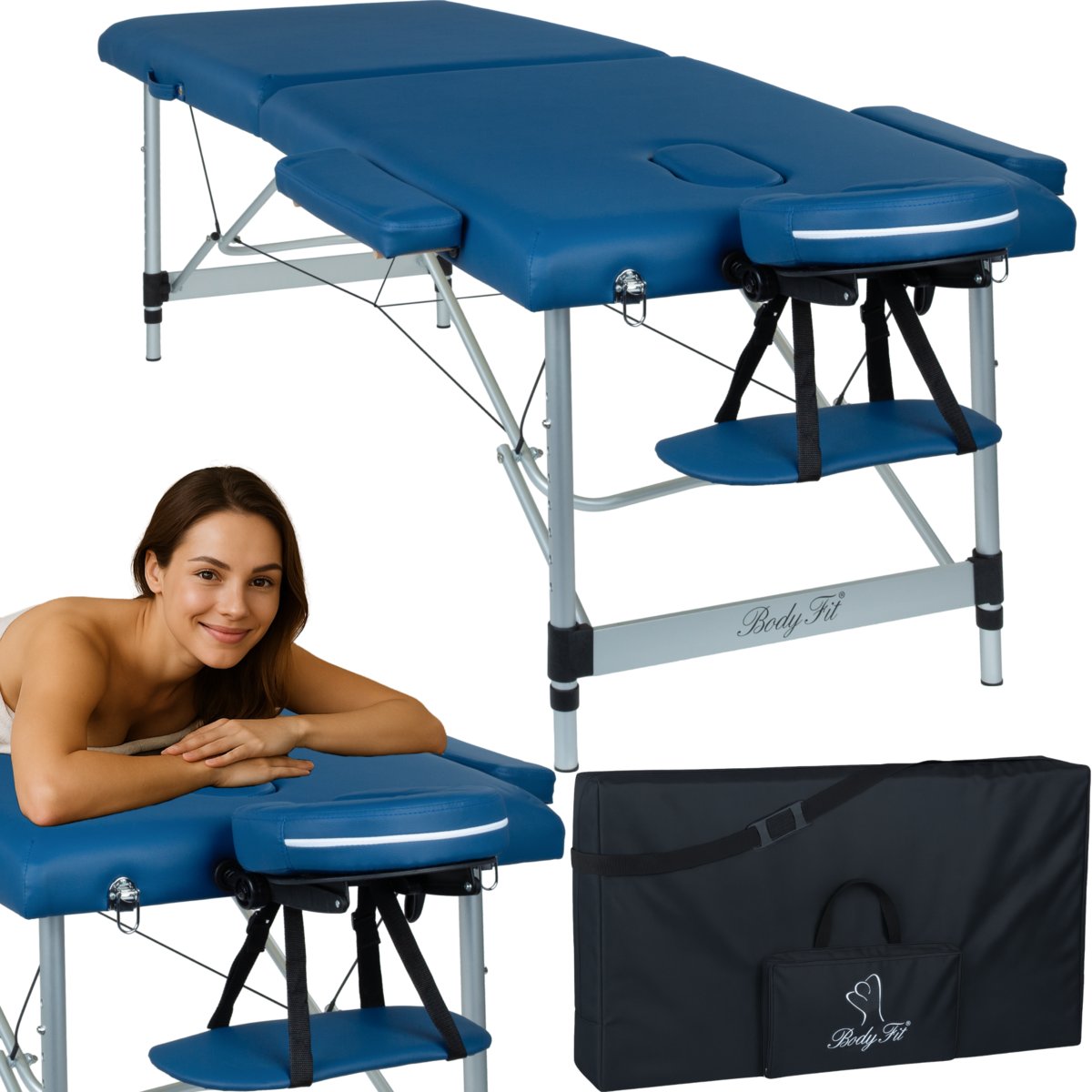 Właśnie zrecenzowałem BODYFIT, Łóżko do masażu 2 segmentowe aluminiowe, niebieski, 223x93,5 cm