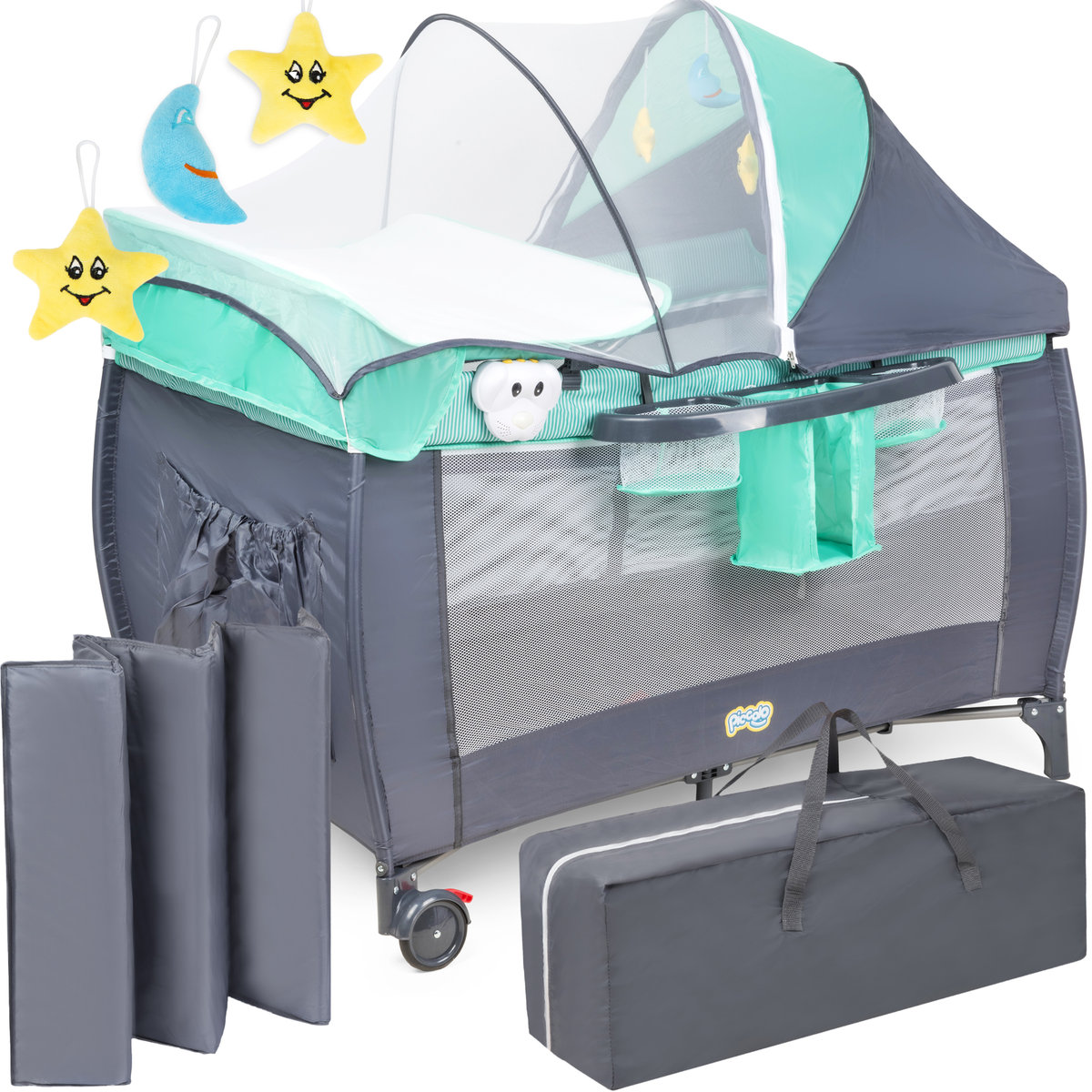 Jest to wielofunkcyjny mebel, który pełni rolę nie tylko wygodnego łóżka ale również kojca do zabawy czy miejscem do przewijania. Lekka, składana konstrukcja oraz torba transportowa z uchwytem, ułatwią przenoszenie łóżeczka.
