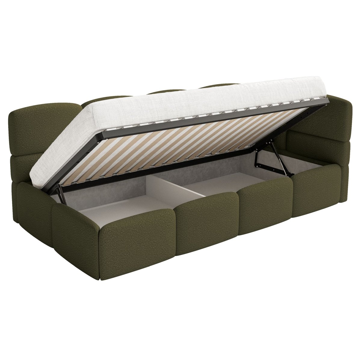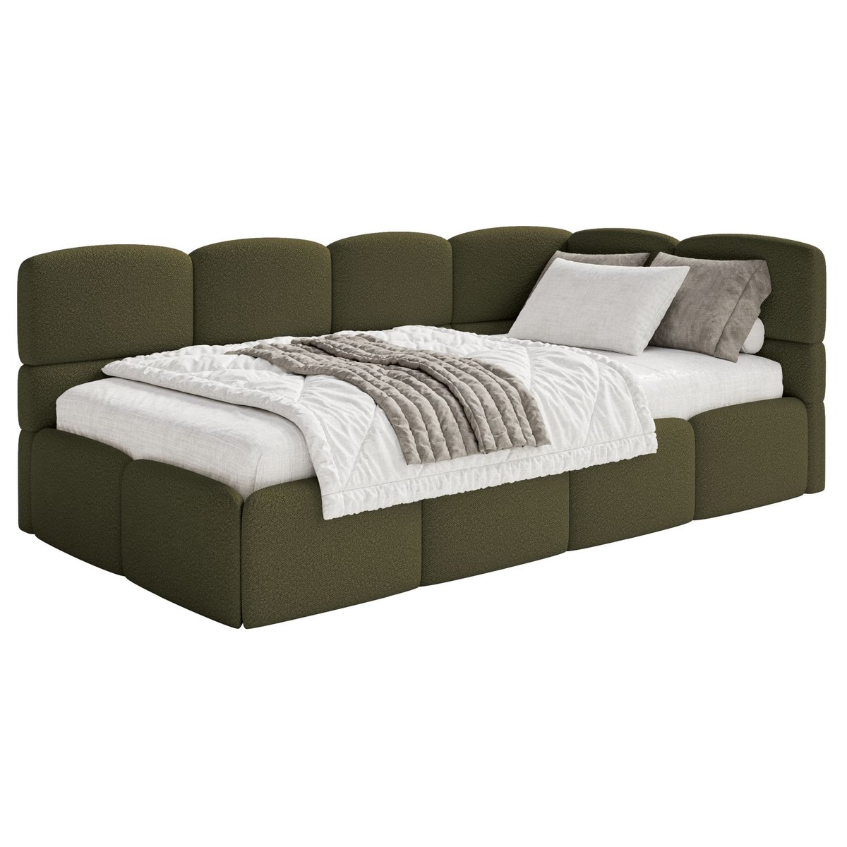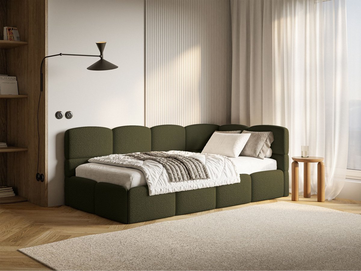 | Nazwa: | Łóżko młodzieżowe Cloudy prawostronne z materacem i pojemnikiem oliwkowe boucle |