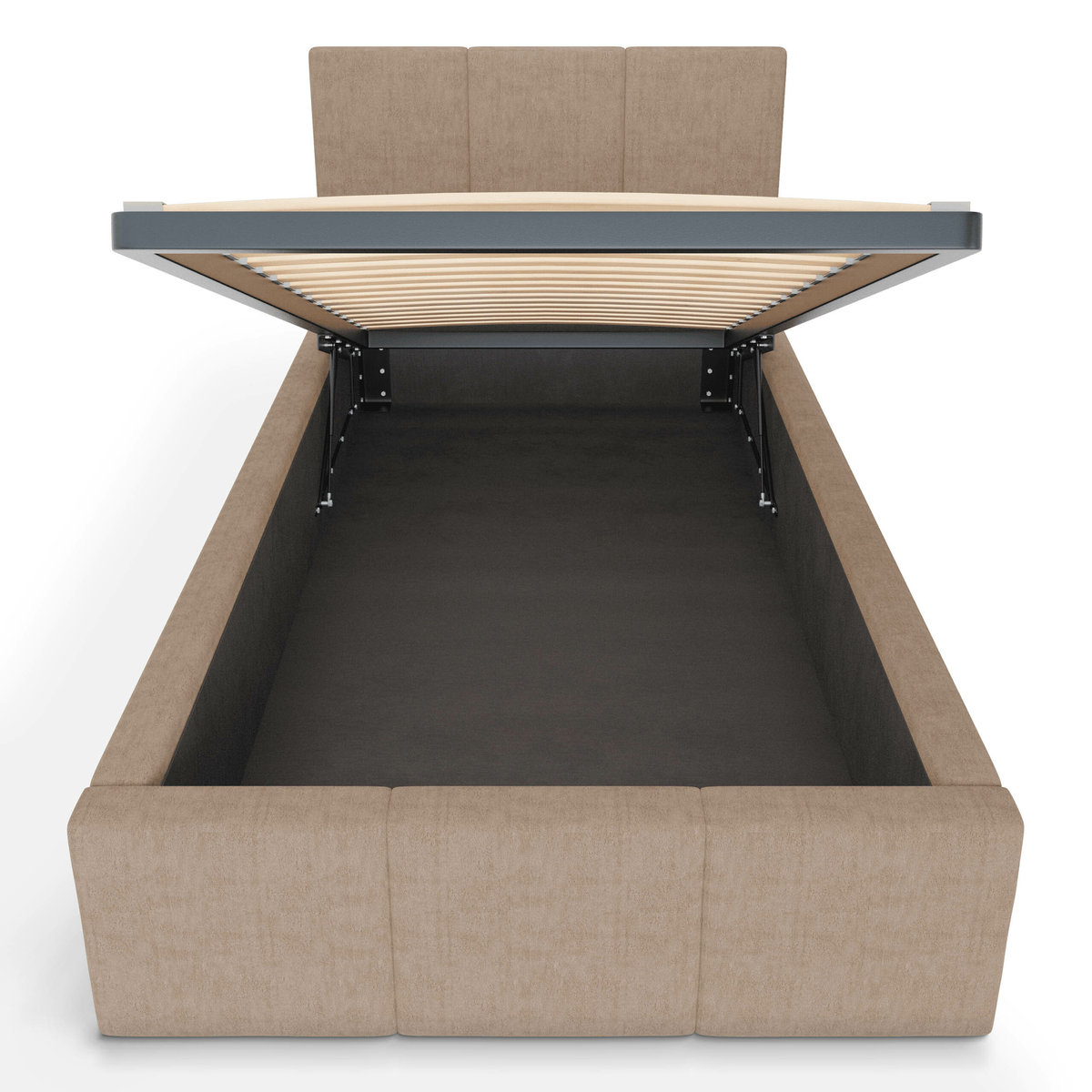 ŁÓŻKO POJEDYNCZE 90x200cm ŁÓŻKO TAPICEROWANE Z POJEMNIKIEM BEŻOWE