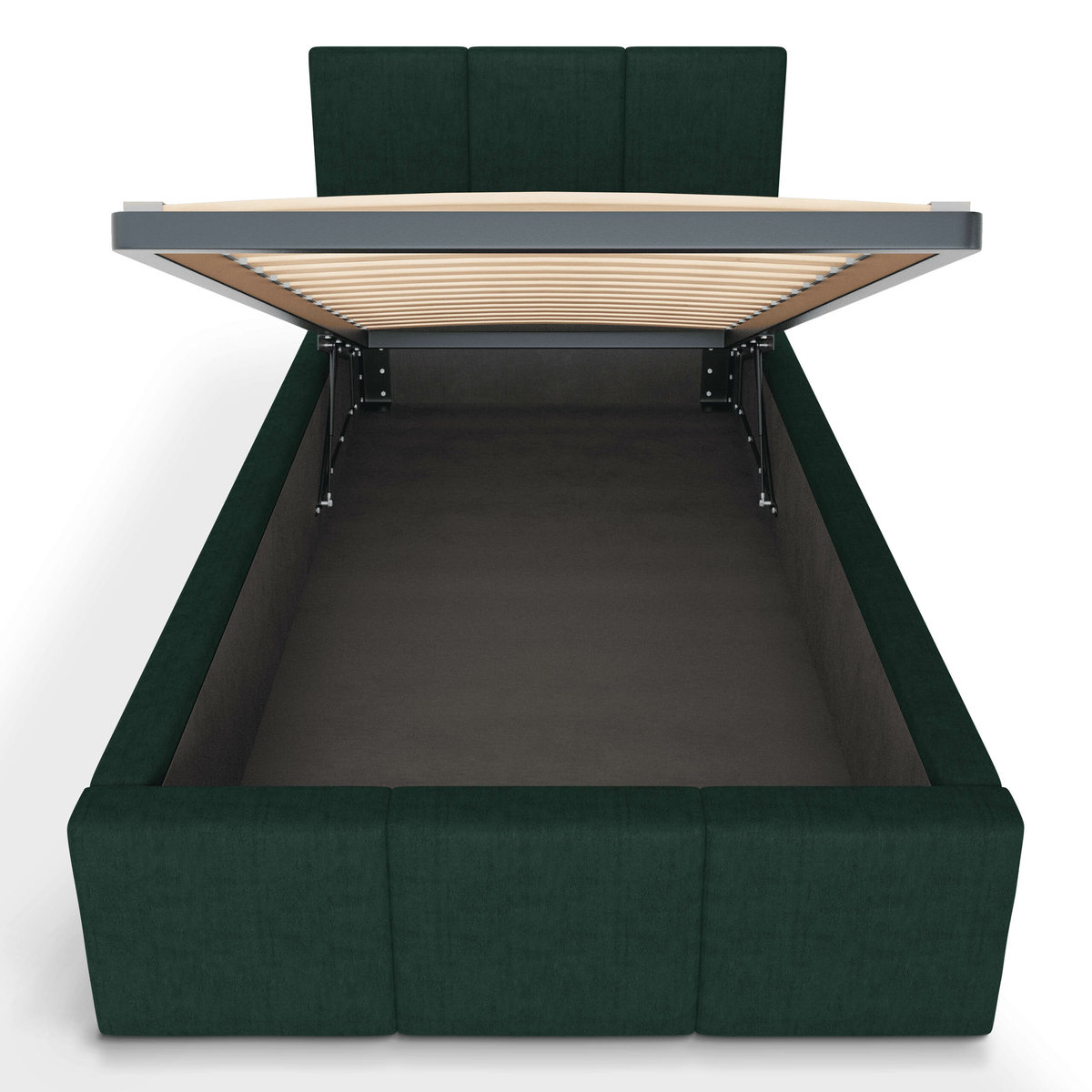 Z łatwością uniesiesz stelaż dzięki dwóm siłownikom gazowym. Te wytrzymałe podnośniki sprawiają, że dostęp do pojemnika pod łóżkiem jest szybki i bezproblemowy, bez potrzeby używania siły.