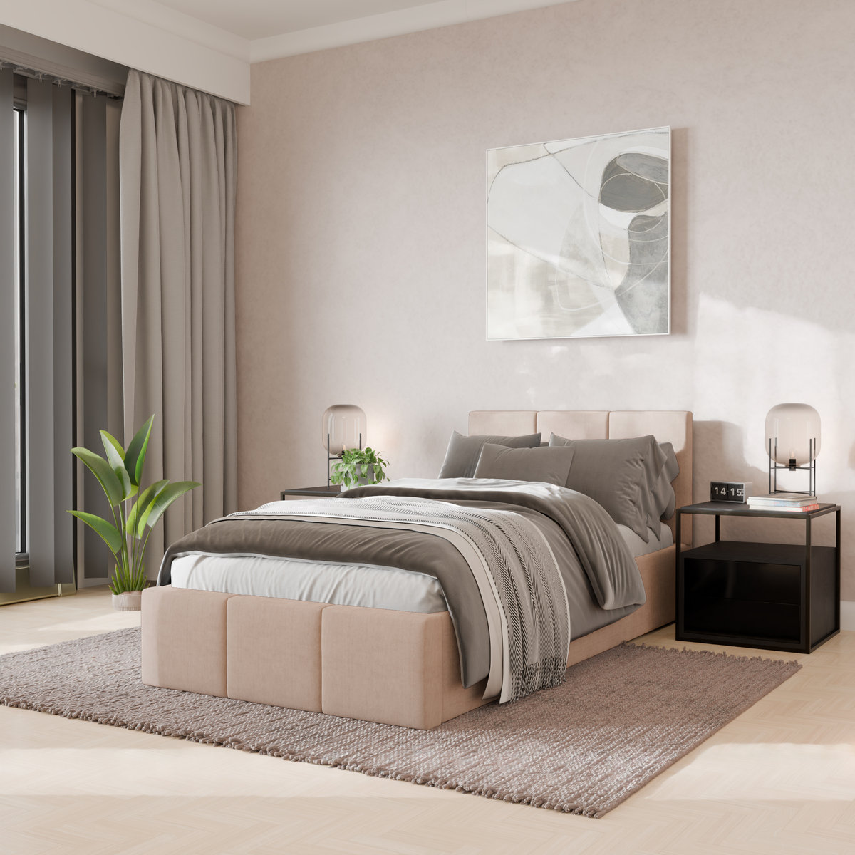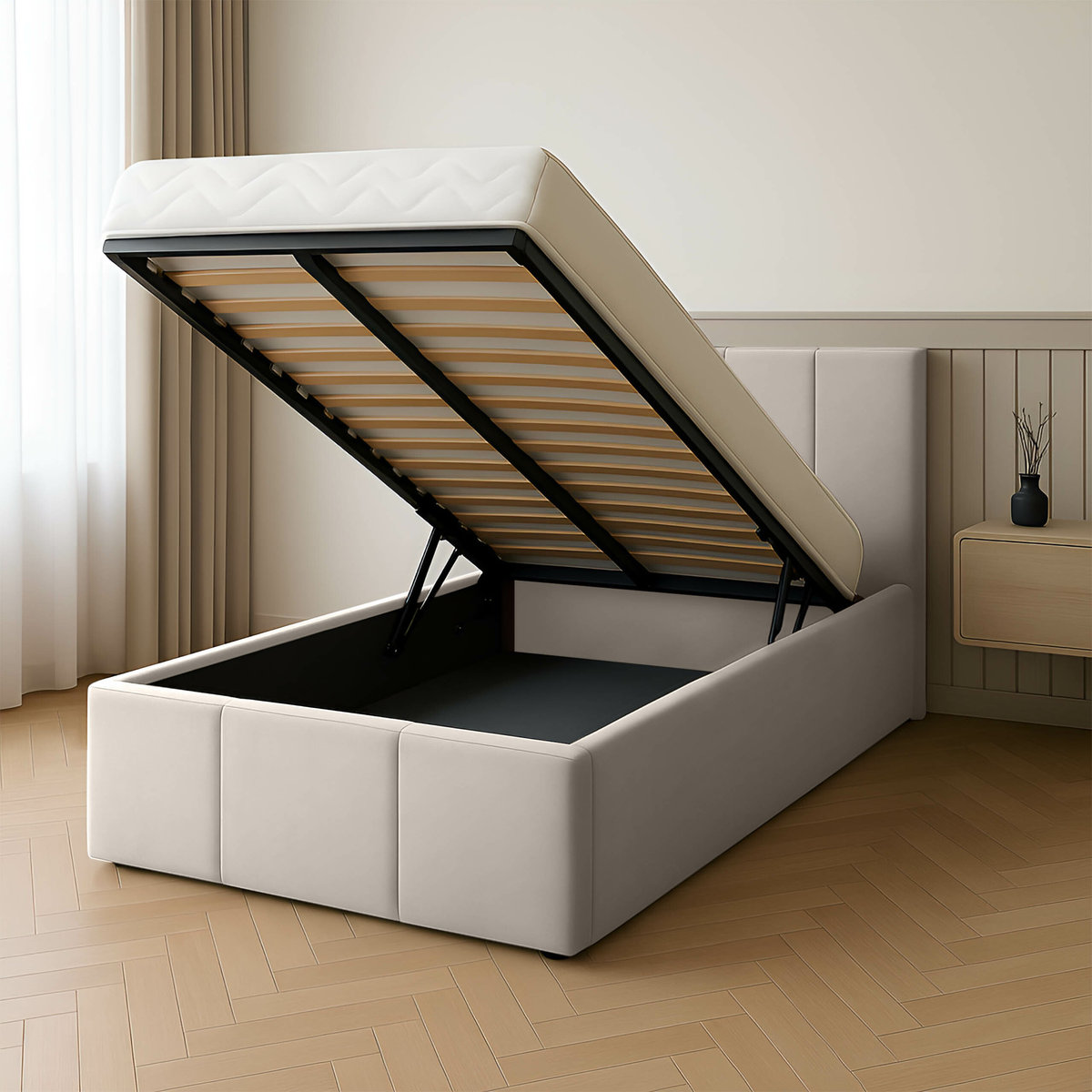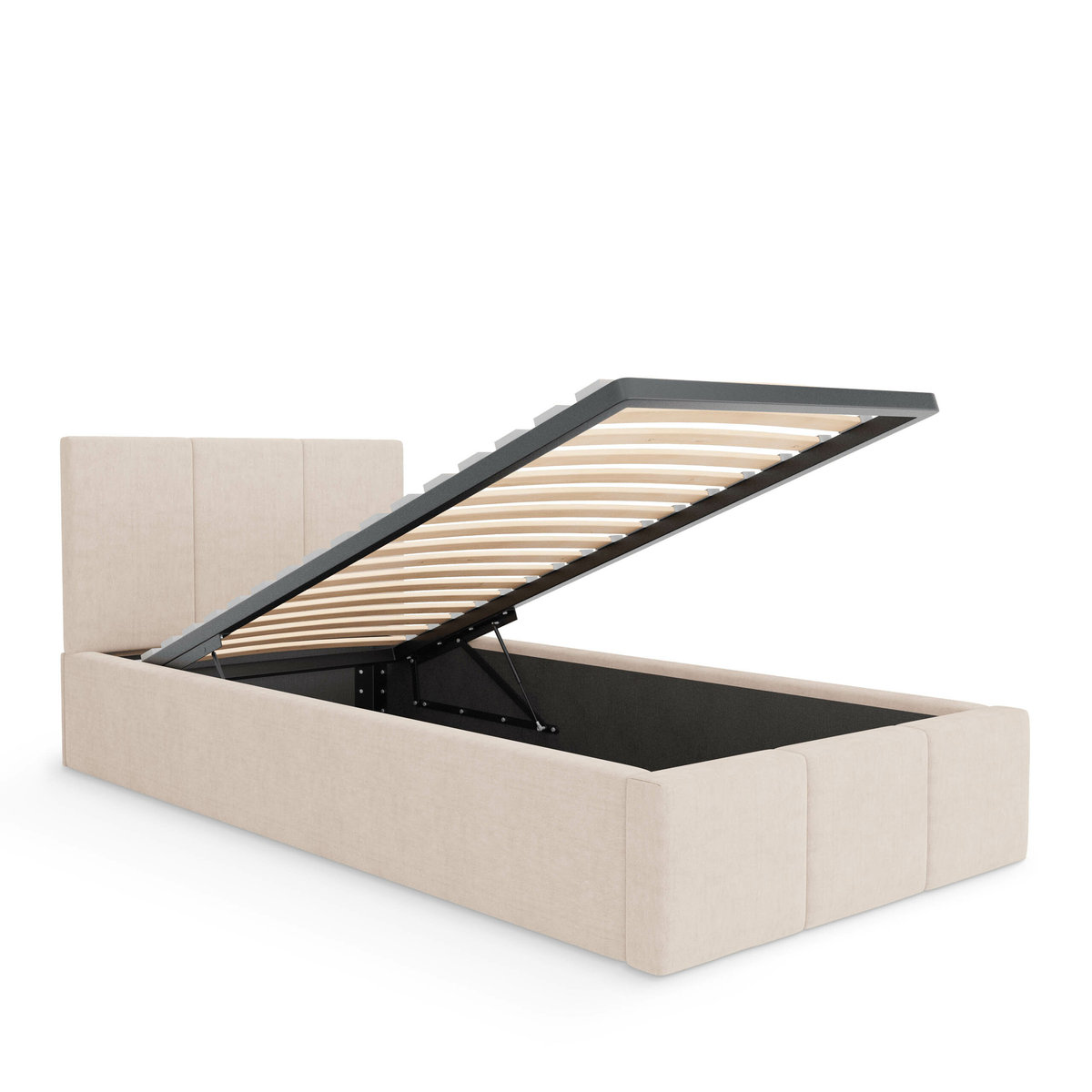 ŁÓŻKO POJEDYNCZE 90x200cm ŁÓŻKO TAPICEROWANE Z POJEMNIKIEM KREMOWE