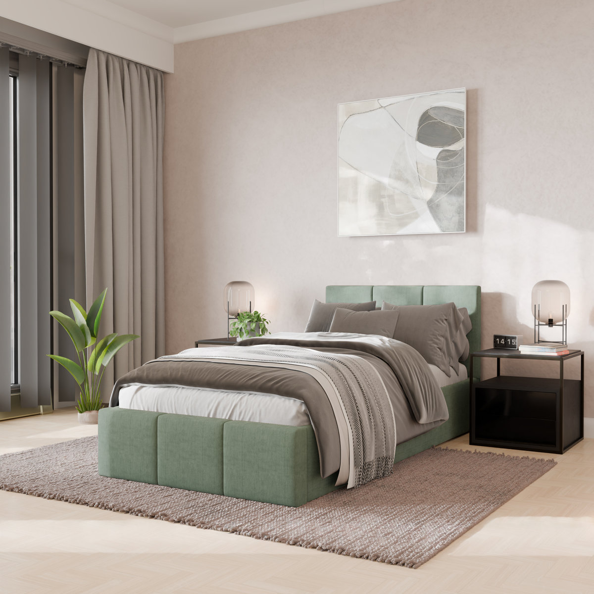ŁÓŻKO POJEDYNCZE 90x200cm ŁÓŻKO TAPICEROWANE Z POJEMNIKIEM MIĘTOWE