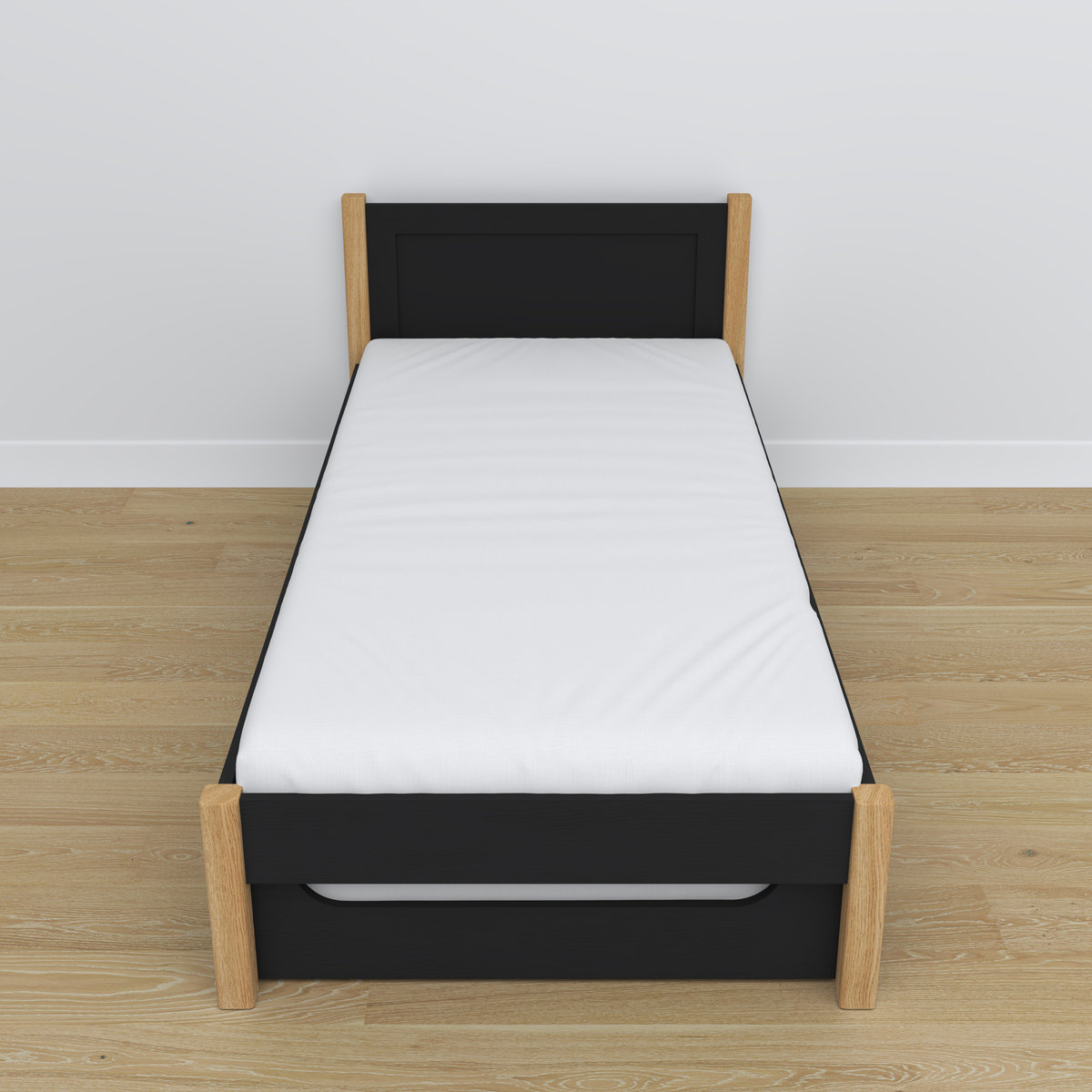 Drewniane łóżko pojedyncze dostępne jest w wersji z szufladą do przechowywania lub z wzmocnioną szufladą przeznaczoną na dodatkowy materac. Występuje również wielu wariantach kolorystycznych.