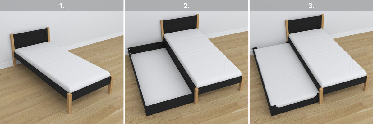 - Szuflada może zostać zamontowana po obu stronach łóżka.