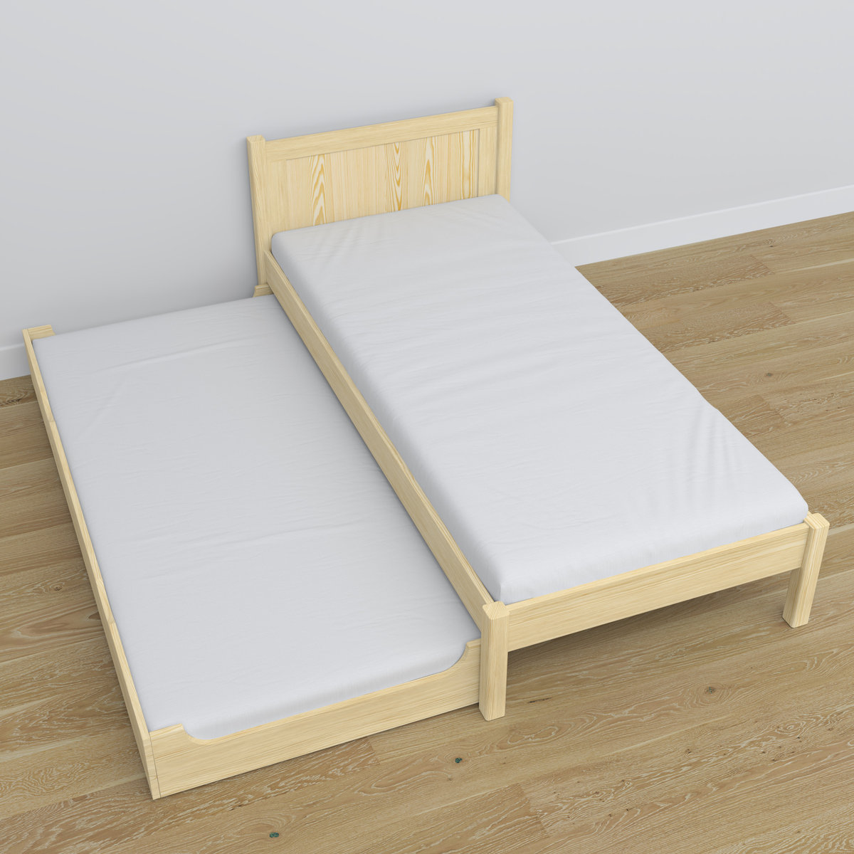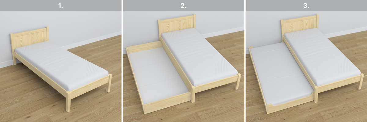 - Łóżka wyposażone w szufladę posiadają wysokiej jakości gumowane kółka, które niwelują ryzyko uszkodzenia podłoża.
