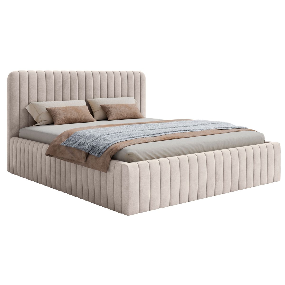 | Nazwa: | Łóżko tapicerowane 160x200 cm Saliano z pojemnikiem szarobeżowe welur hydrofobowy |