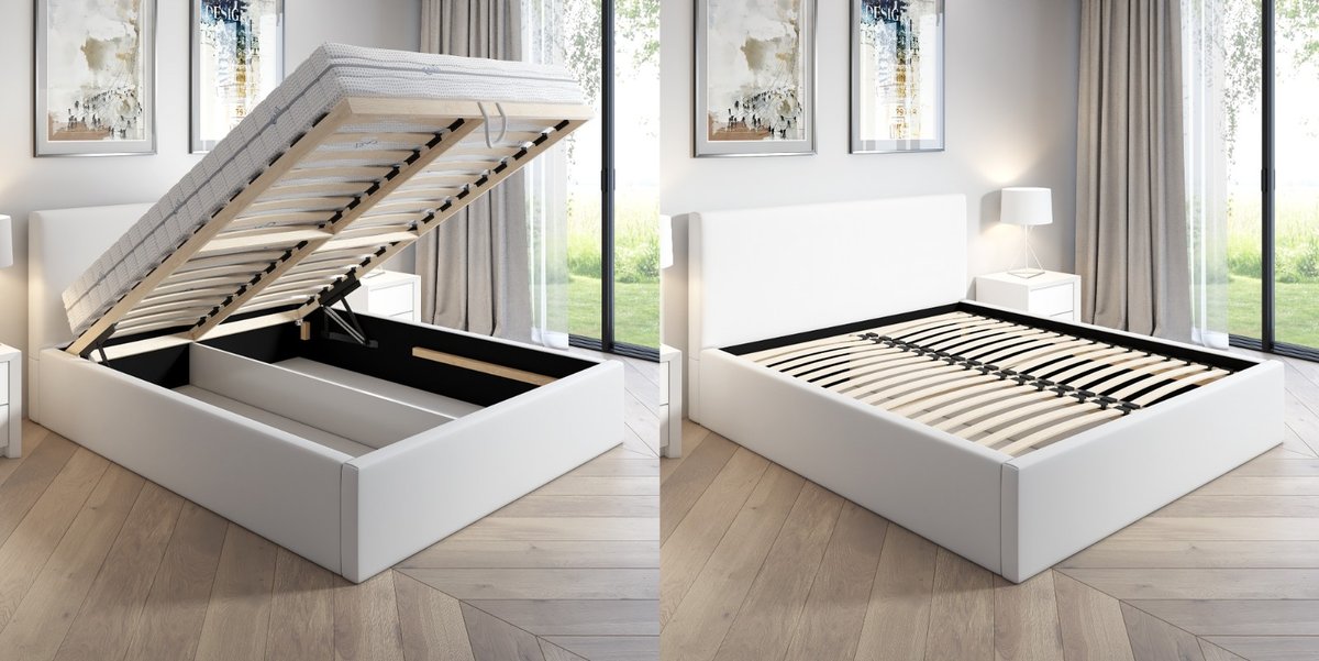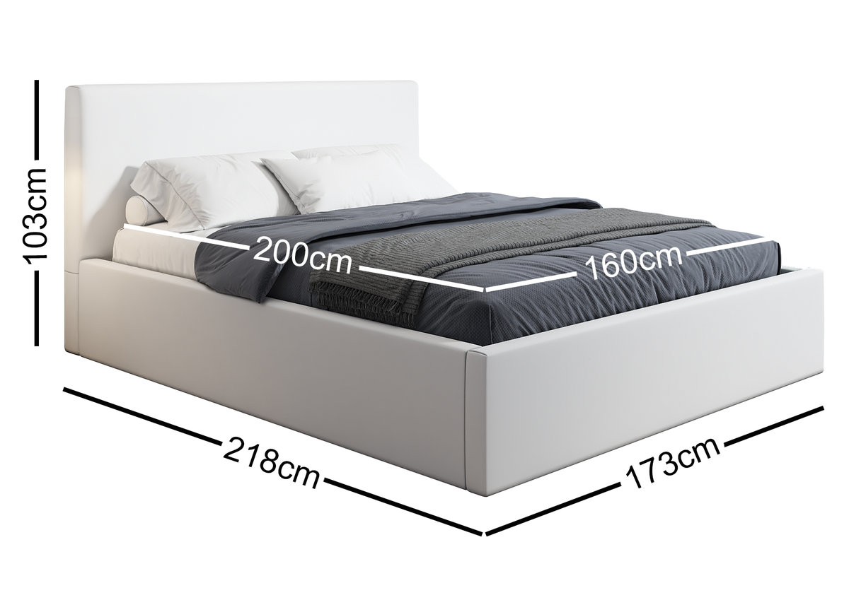 Łóżko tapicerowane METZ 160x200Tkanina: Riviera 38Łóżko posiada pojemnik na pościel.Stelaż na metalowych podnośnikach sprężynowych.Łóżko dostarczane w 3 paczkach, do samodzielnego montażu. Czytelna i