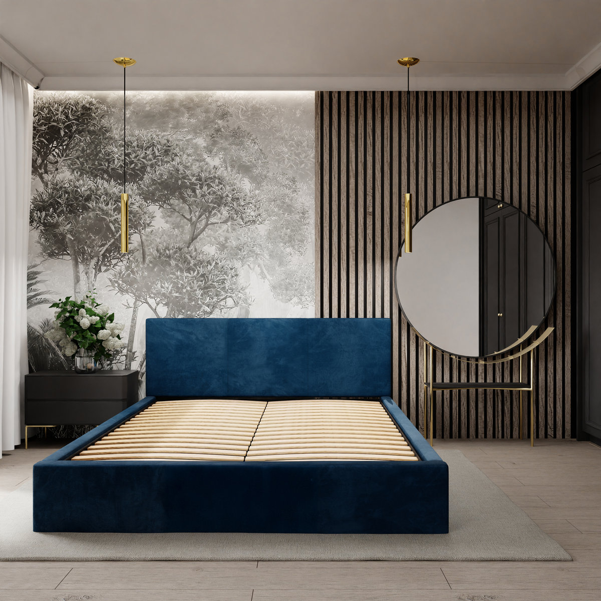 | Nazwa: | ŁÓŻKO TAPICEROWANE DO SYPIALNI 120cm x 200cm ŁÓŻKO PODWÓJNE Z POJEMNIKIEM GRANATOWE |
