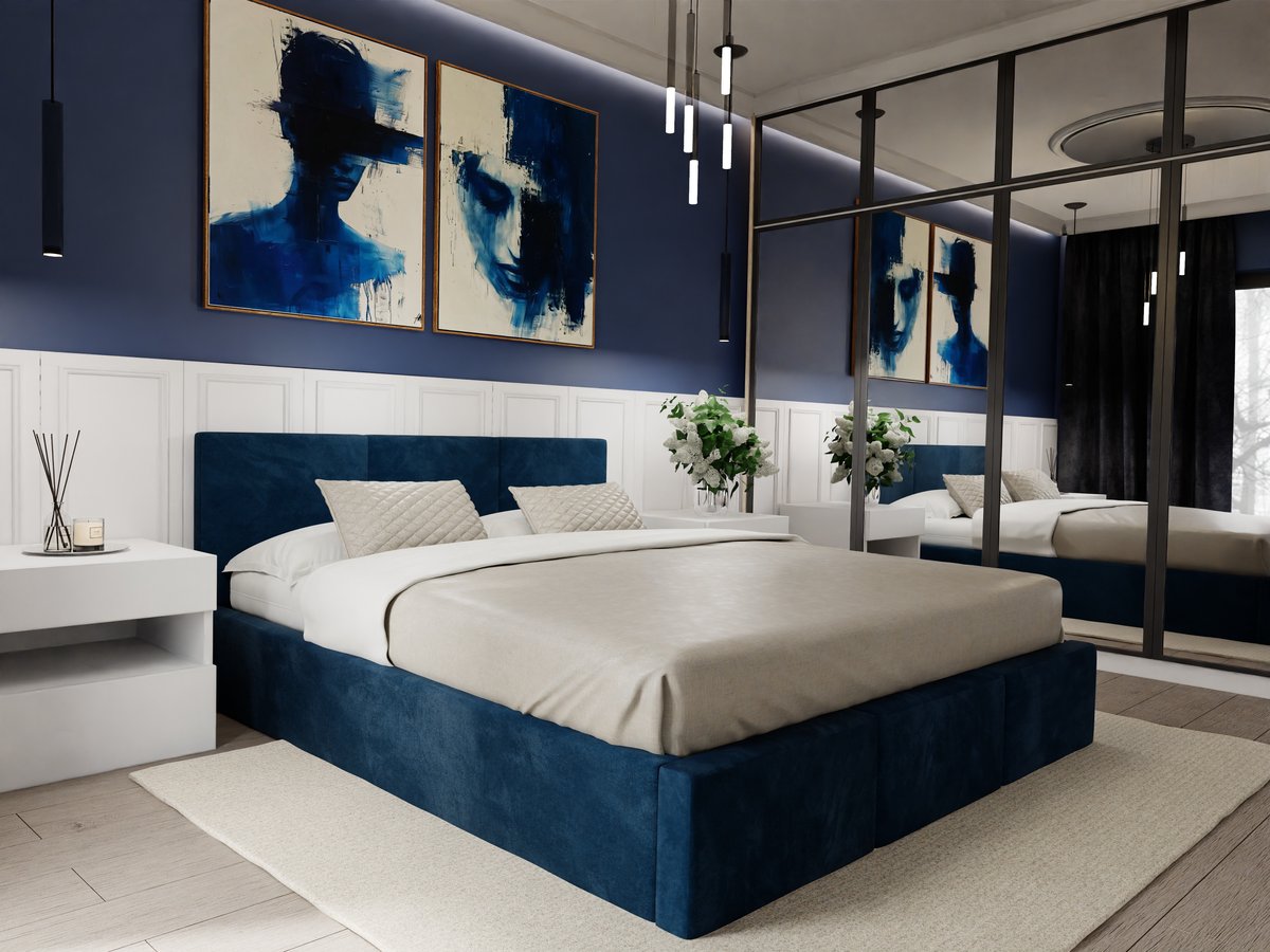 | Nazwa: | Łóżko tapicerowane do sypialni 140cm x 200cm łóżko podwójne z pojemnikiem granatowe |