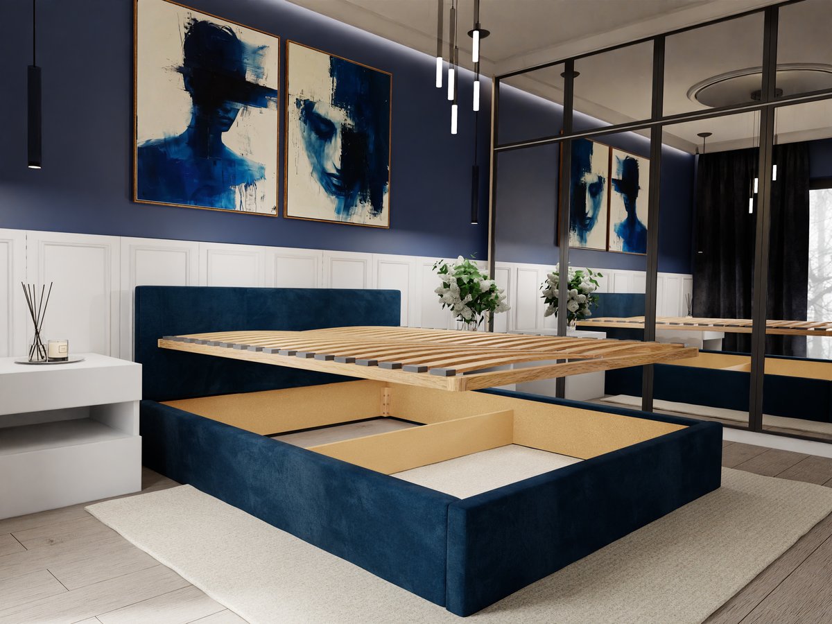 | Nazwa: | ŁÓŻKO TAPICEROWANE DO SYPIALNI 140cm x 200cm ŁÓŻKO PODWÓJNE Z POJEMNIKIEM GRANATOWE |