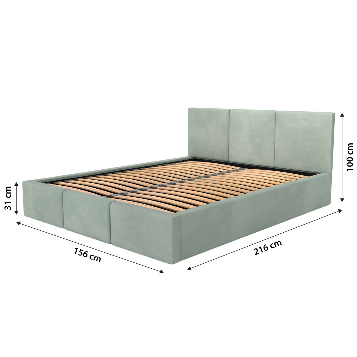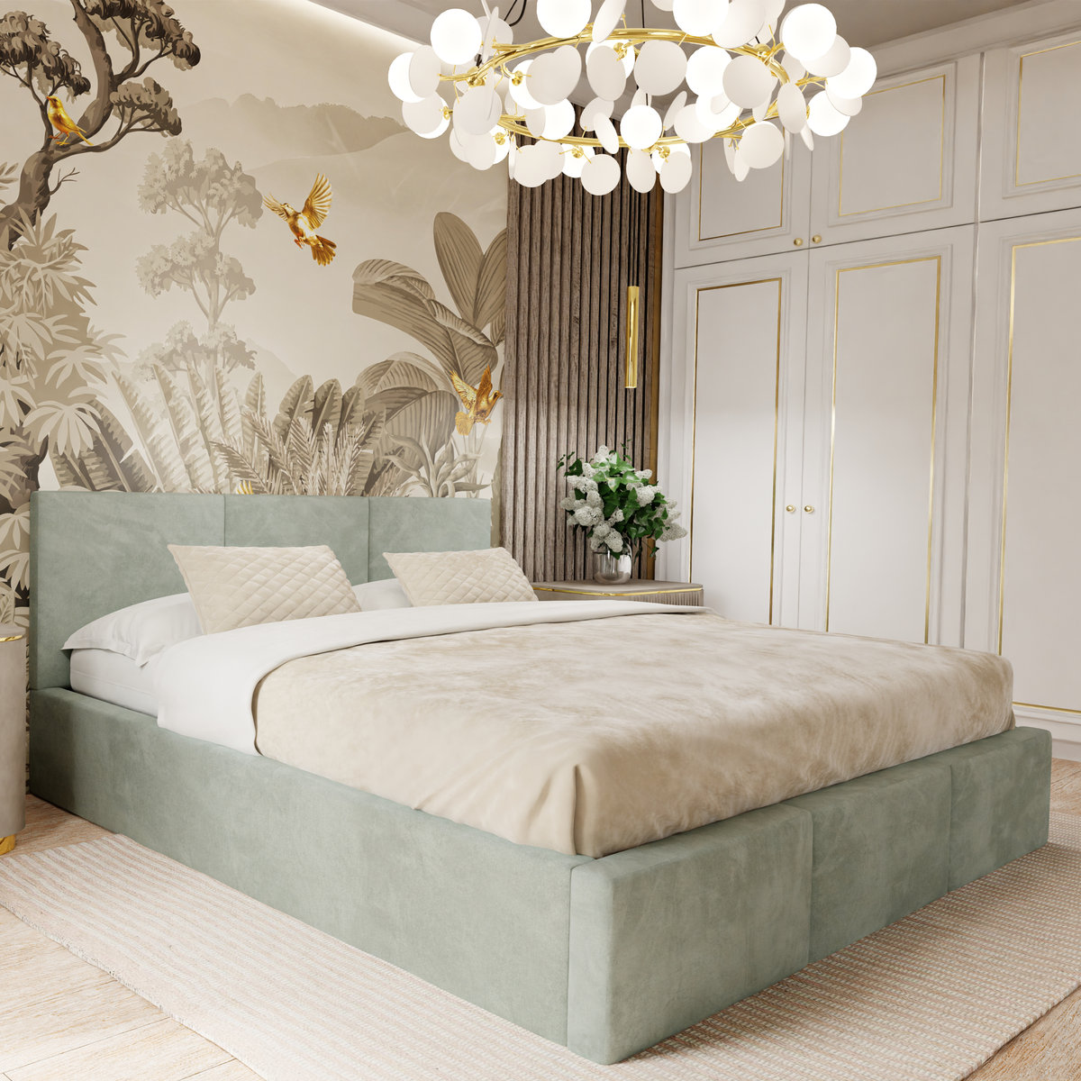 ŁÓŻKO TAPICEROWANE DO SYPIALNI 140cm x 200cm ŁÓŻKO PODWÓJNE Z POJEMNIKIEM MIĘTOWE